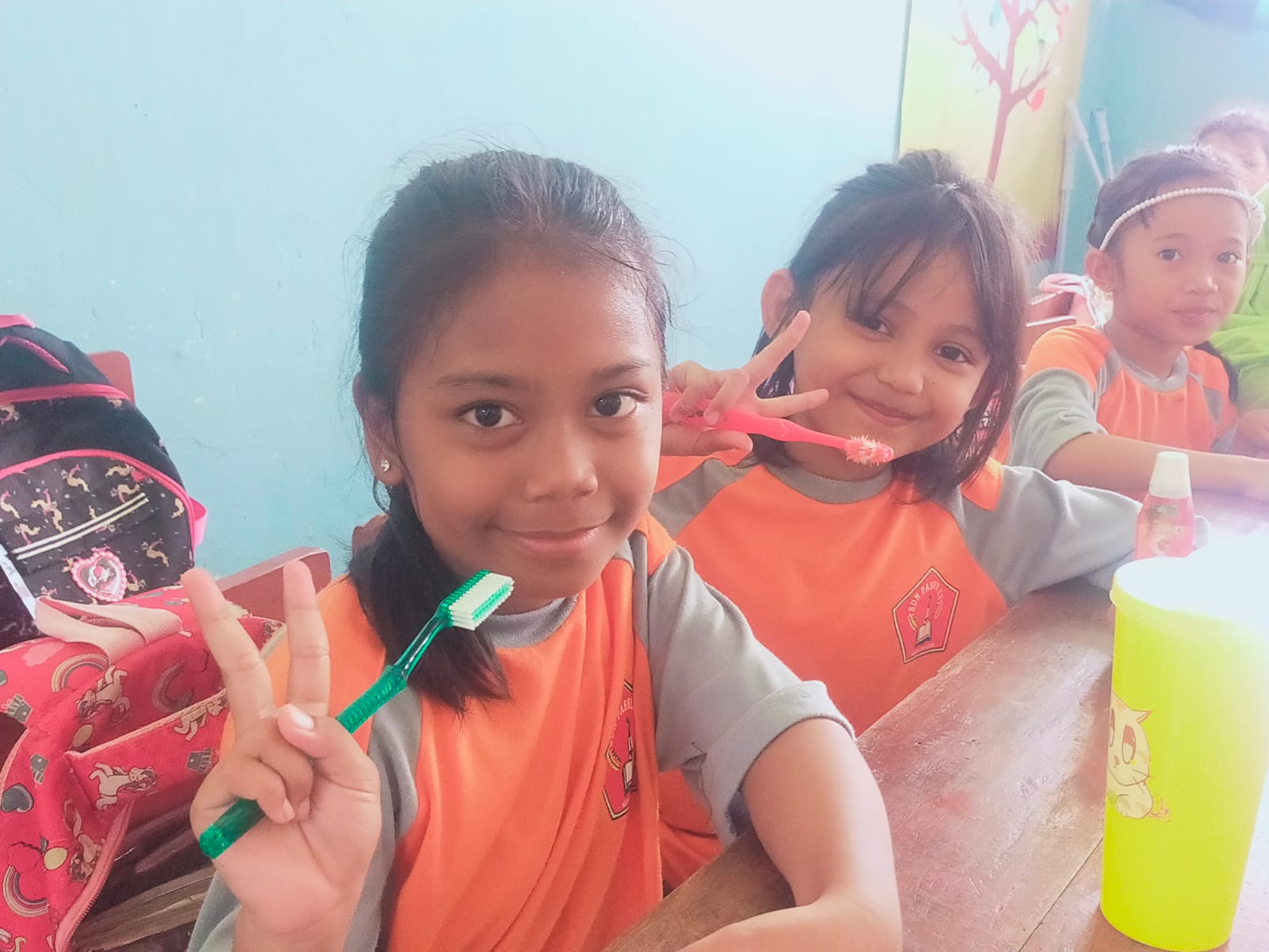 Para peserta giat bakti Non-Fisik Pertinas SBH ke-VI ini diterjunkan ke sekolah-sekolah untuk memberikan pembelajaran dan pemahaman mengenai tata cara merawat dan menggosok gigi yang baik dan benar salah satunya ke sekolah SDN Pabrik Es Ciwaringin Kota Bogor.