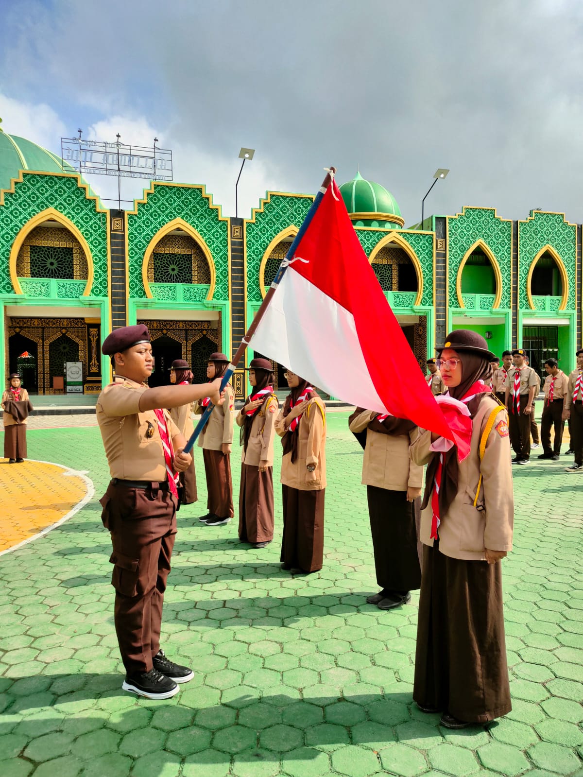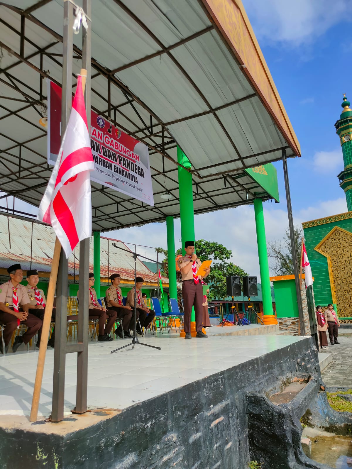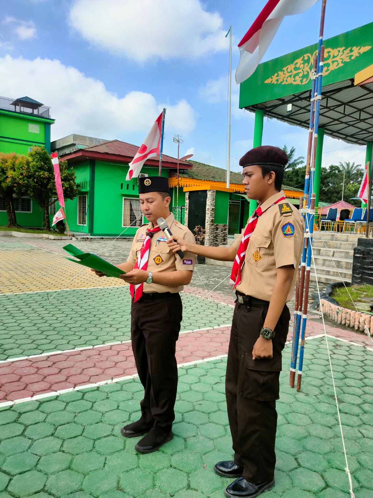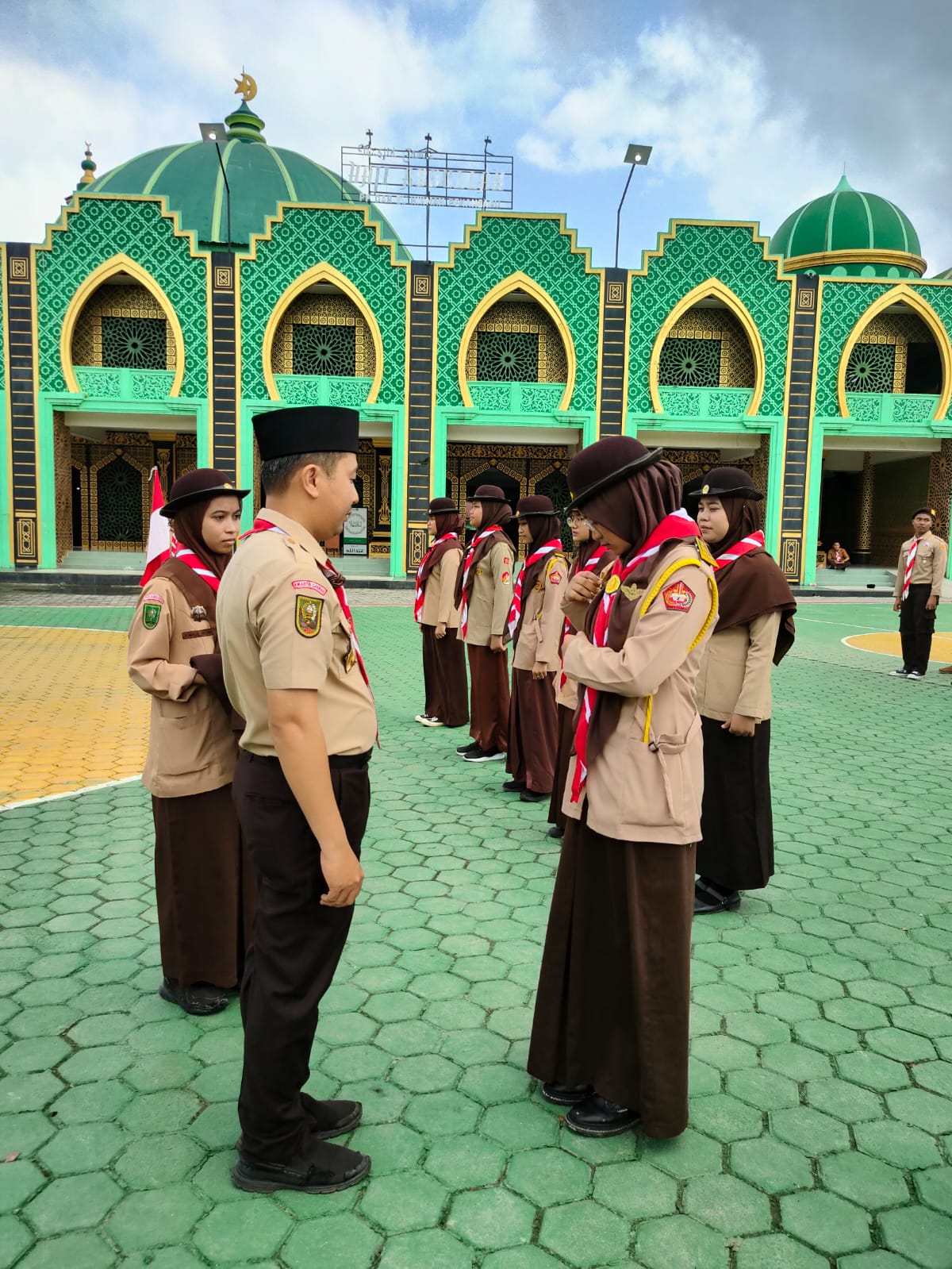 Ketua Kwarran Binawidya kak Irwan Yuliadi melantik Pengurus DKR Binawidya Pergantian Antar Waktu Masa Bakti 2021-2024 di halaman Pondok Pesantren Dar El Hikmah Pekanbaru, Minggu, 28/1/2024