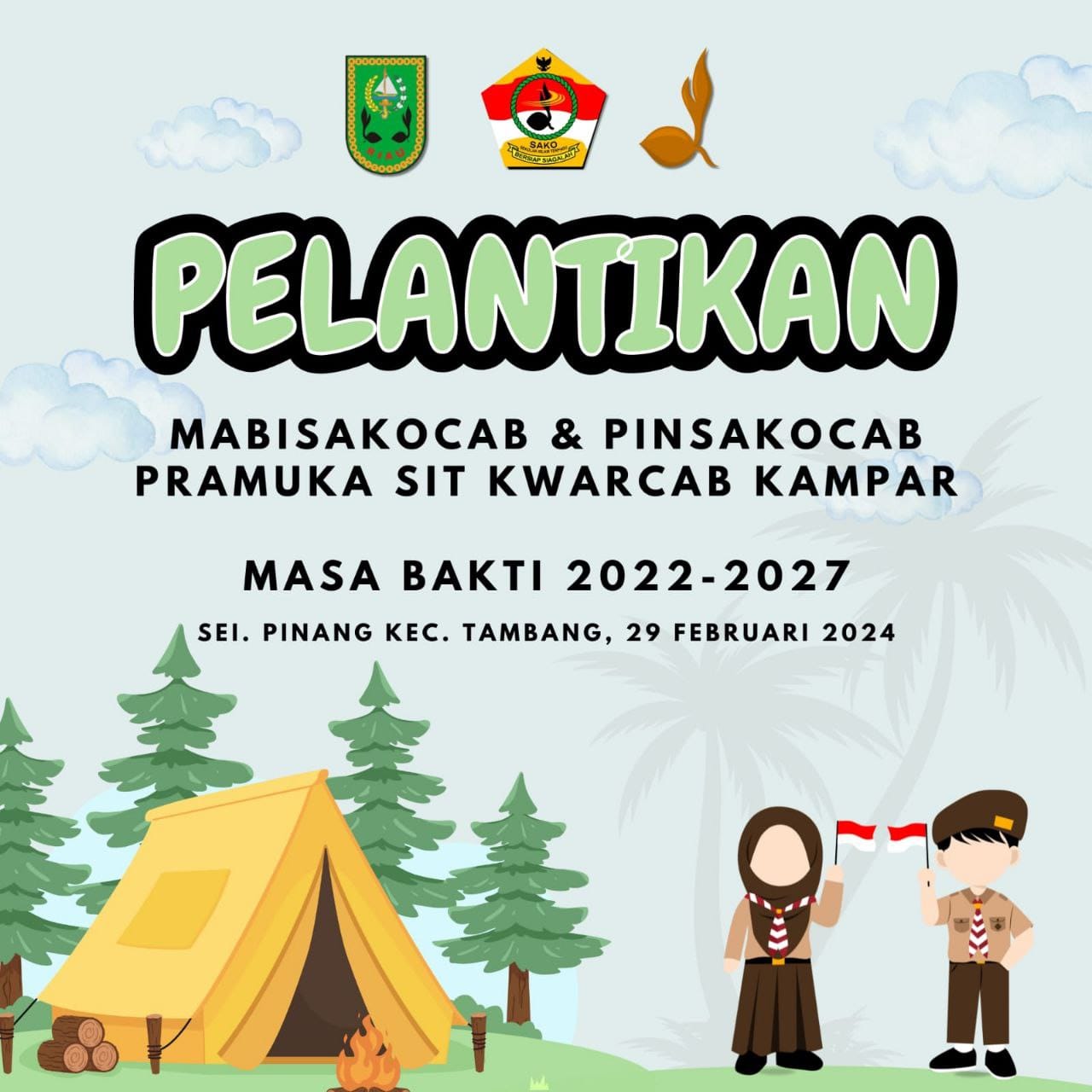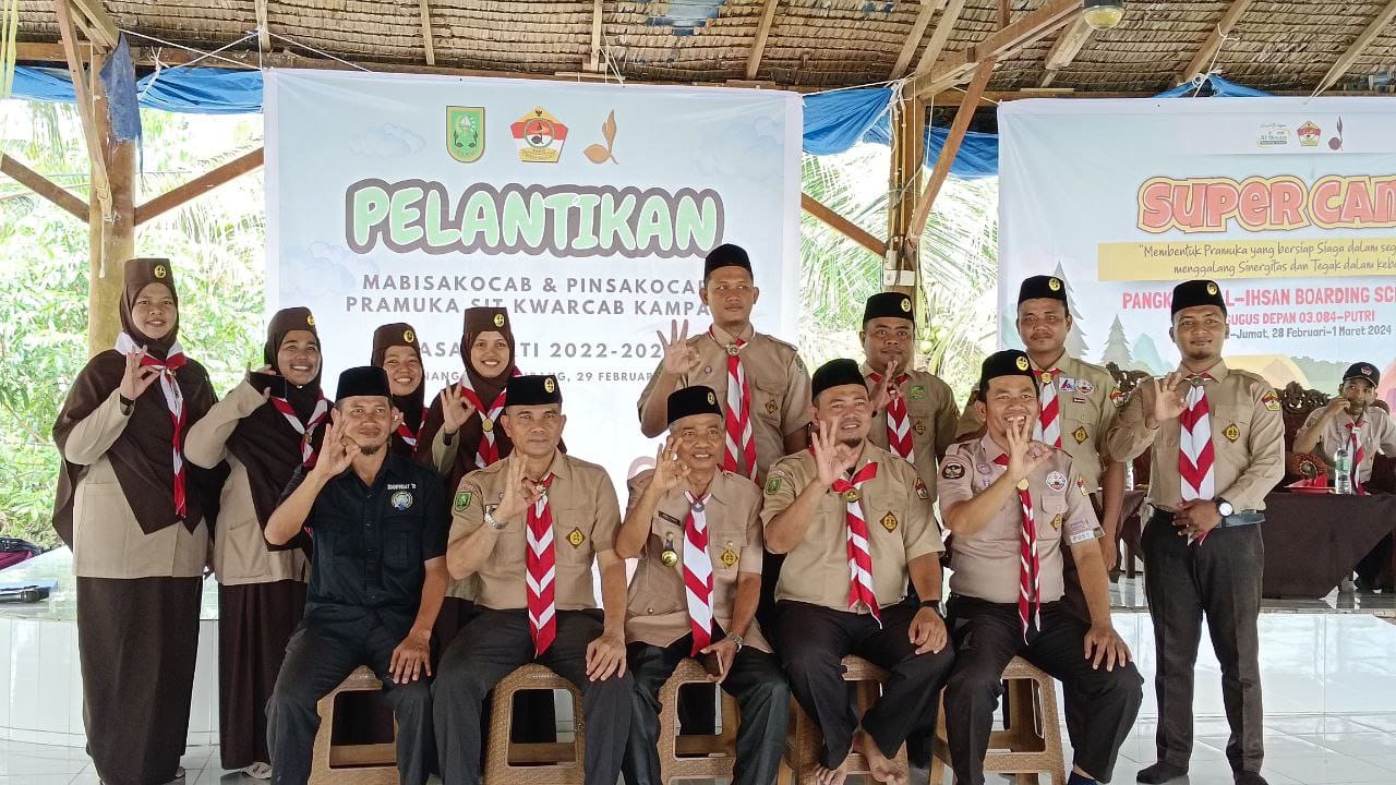 PRAMUKA.ID, Tambang – Ketua Kwartir Cabang (Kwarcab) Gerakan Pramuka Kampar yang diwakili oleh Wakil Ketua/Ketua Bidang Pembinaan Anggota Dewasa kak Ahmad Tarmizi MPd melantik Majelis Pembimbing Satuan Komunitas Pramuka Tingkat Cabang (Mabisakocab) dan Pimpinan Satuan Komunitas Pramuka Tingkat Cabang (Pinsakocab) Pramuka Sekolah Islam Terpadu (SIT) Kampar masa bakti 2022-2027 bertempat di taman wisata Nadin, Sei. Pinang Kecamatan Tambang Kabupaten Kampar, Kamis, 29/2/2024.