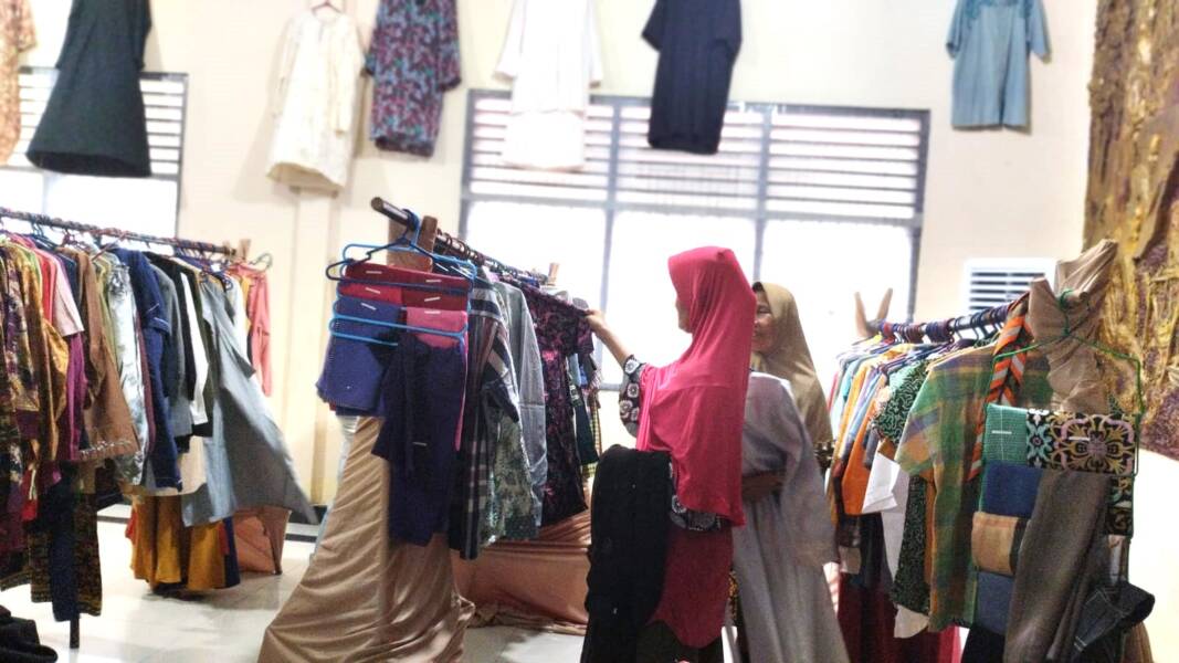 Masyarakat memilih baju di Mall Pramuka Peduli Sesama Kwarda di aula Kwarda