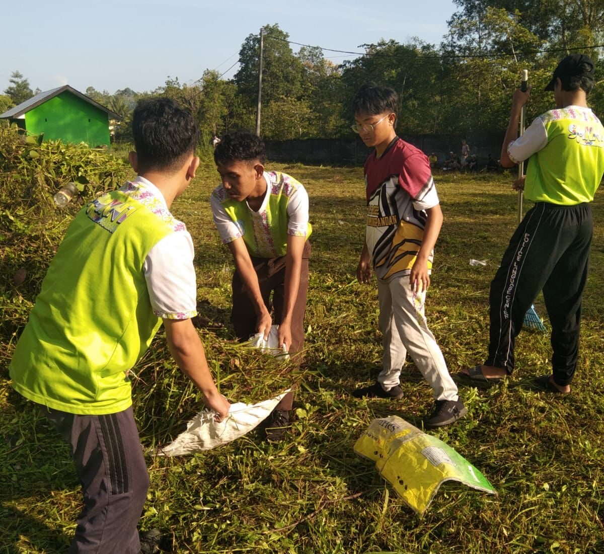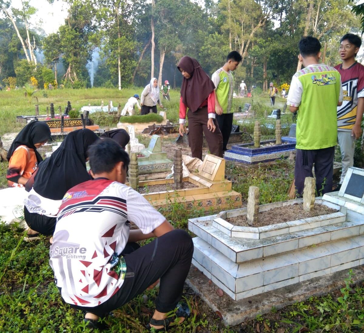 Anggota Gerakan Pramuka dan kader Adiwiyata bersama masyarakat Ds. Perawas melakukan Gotong Royong melakukan pembersihan TPU Jerat Nangkak, Ds. Perawas, Kecamatan Tanjungpandan, Kabupaten Belitung, Minggu (25/2/2024) . Aksi Gotong Royong ini dilaksanakan dalam rangka memperingati Hari Ulang Tahun BADEN POWELL, “Baden Powell Day.