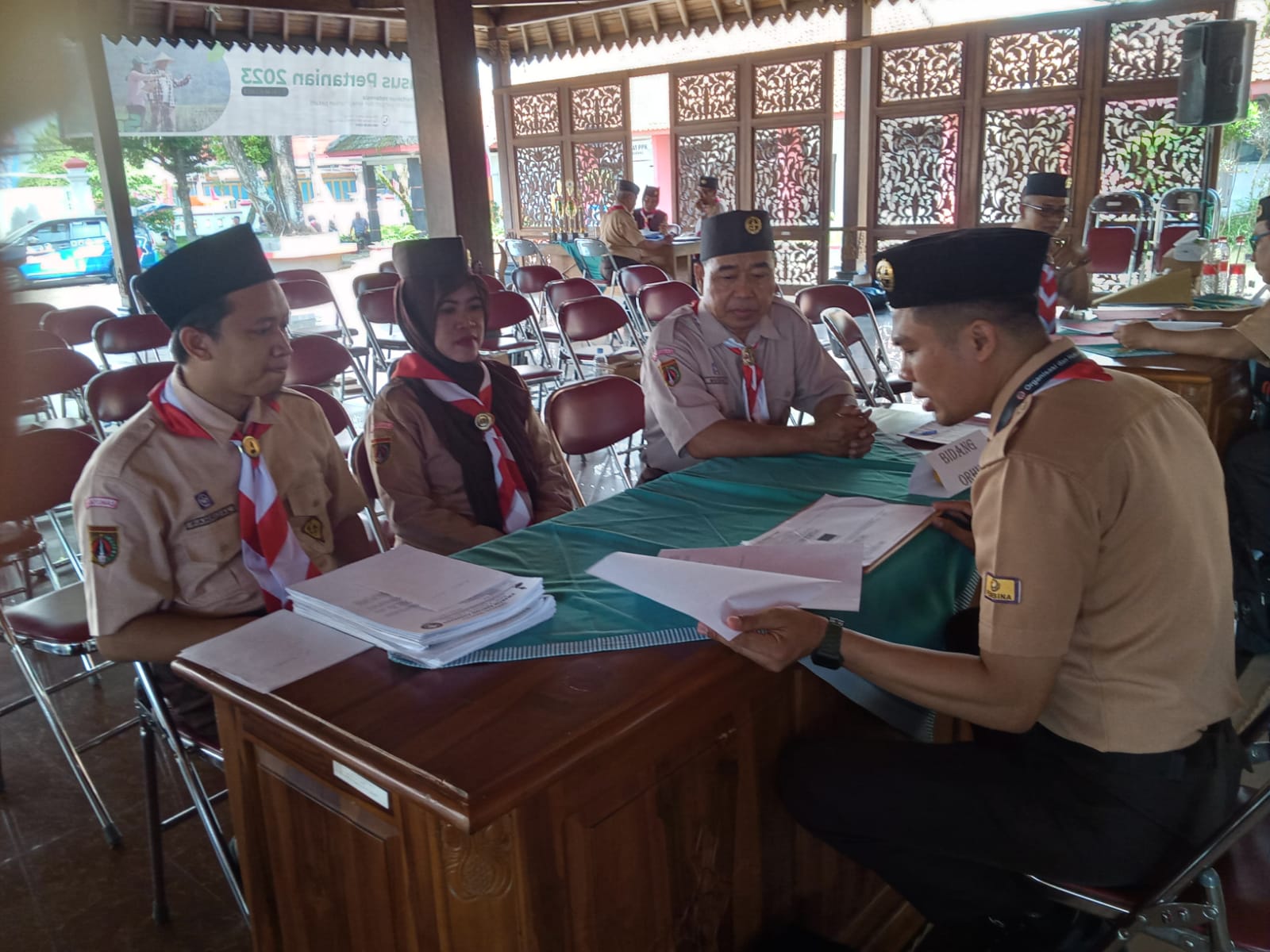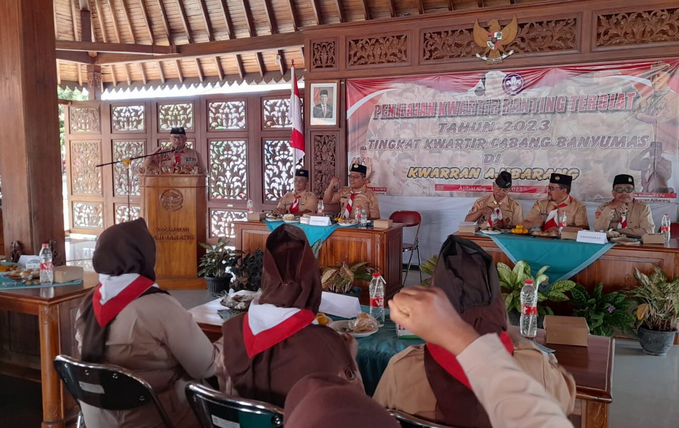 PRAMUKA.ID – Kwartir Ranting (Kwarran) Gerakan Pramuka Ajibarang ikuti Lomba Penilaian Kewartir Ranting Tergiat Kwartir Cabang (Kwarcab) Banyumas yang dilaksanakan di Aula Pendopo Kantor Kecamatan Ajibarang, Sabtu, (1/7/2023). Hadir dalam kegiatan tersebut, Ketua Kwartir Cabang Banyumas, Kak Agus Nur Hadie, S.Sos., M.Si., Jajaran Ketua Majelis Pembina Ranting (Mabiran), serta Tim Penilai dari Kwarcab Banyumas.
