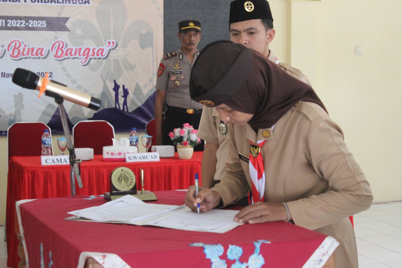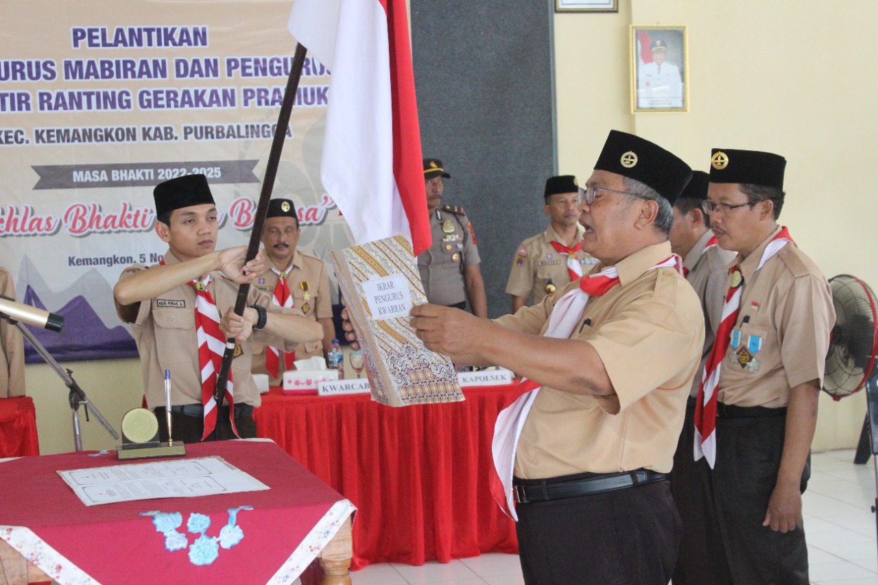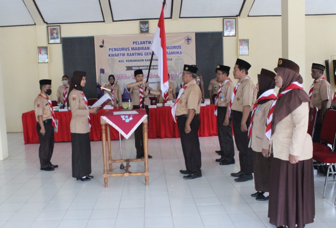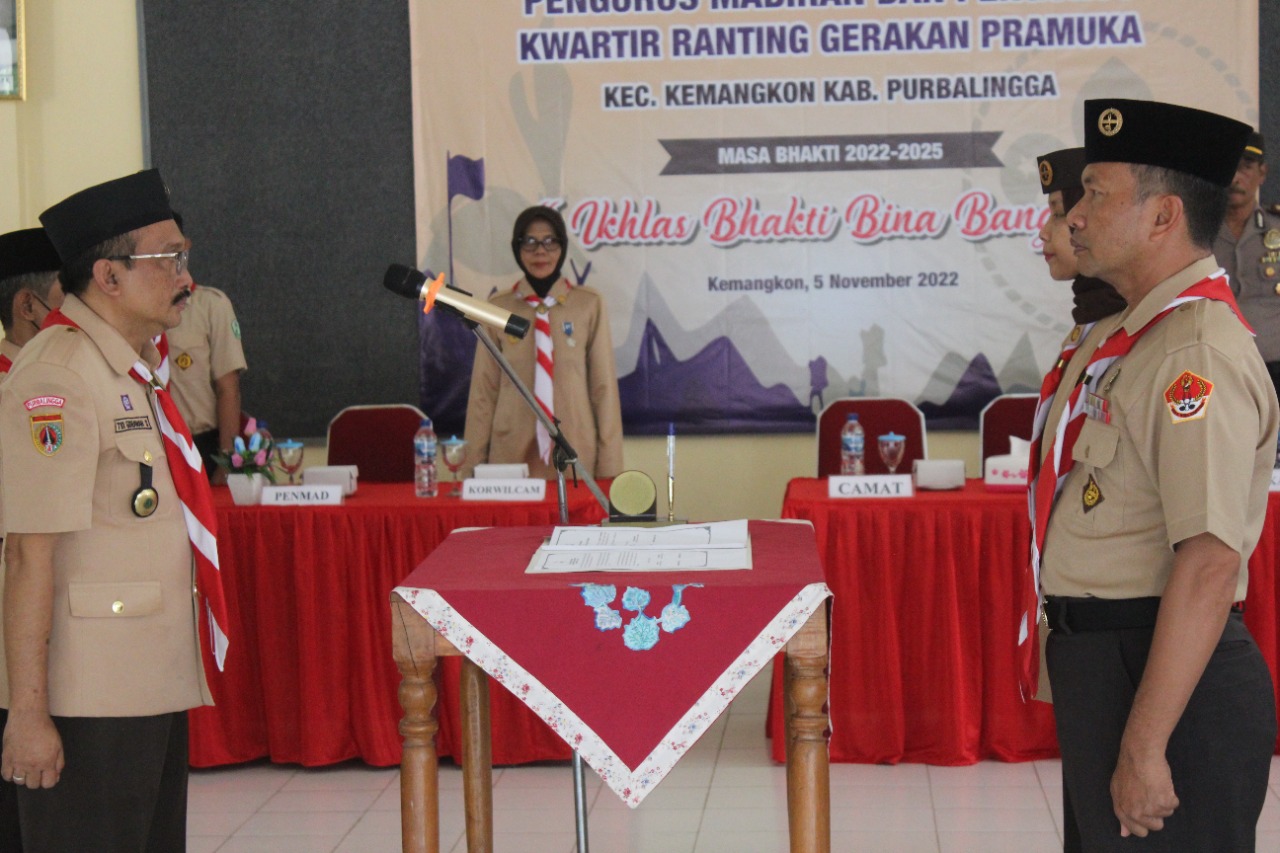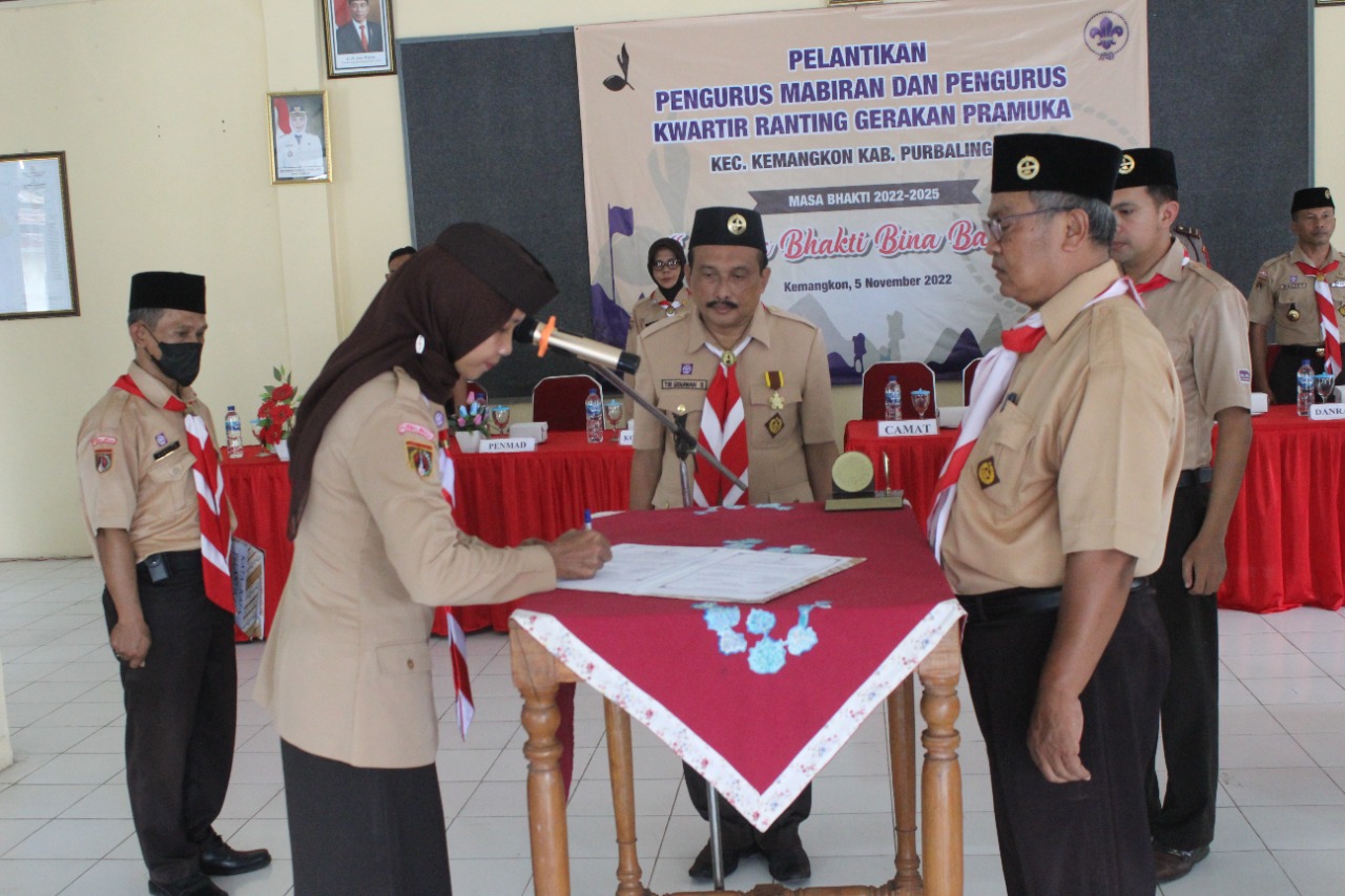 PRAMUKA.ID – Ketua Kwarcab Gerakan Pramuka Purbalingga, Kak Tri Gunawan Setyadi, SH., MH. melantik Kak Kustinah, S.STP., M.Si menjadi Ketua Majelis Pembimbing Ranting (Mabiran) Gerakan Pramuka Kemangkon, Sabtu (5/11/2022) bertempat di Aula Pangeran Atas Angin, kantor Kecamatan Kemangkon.