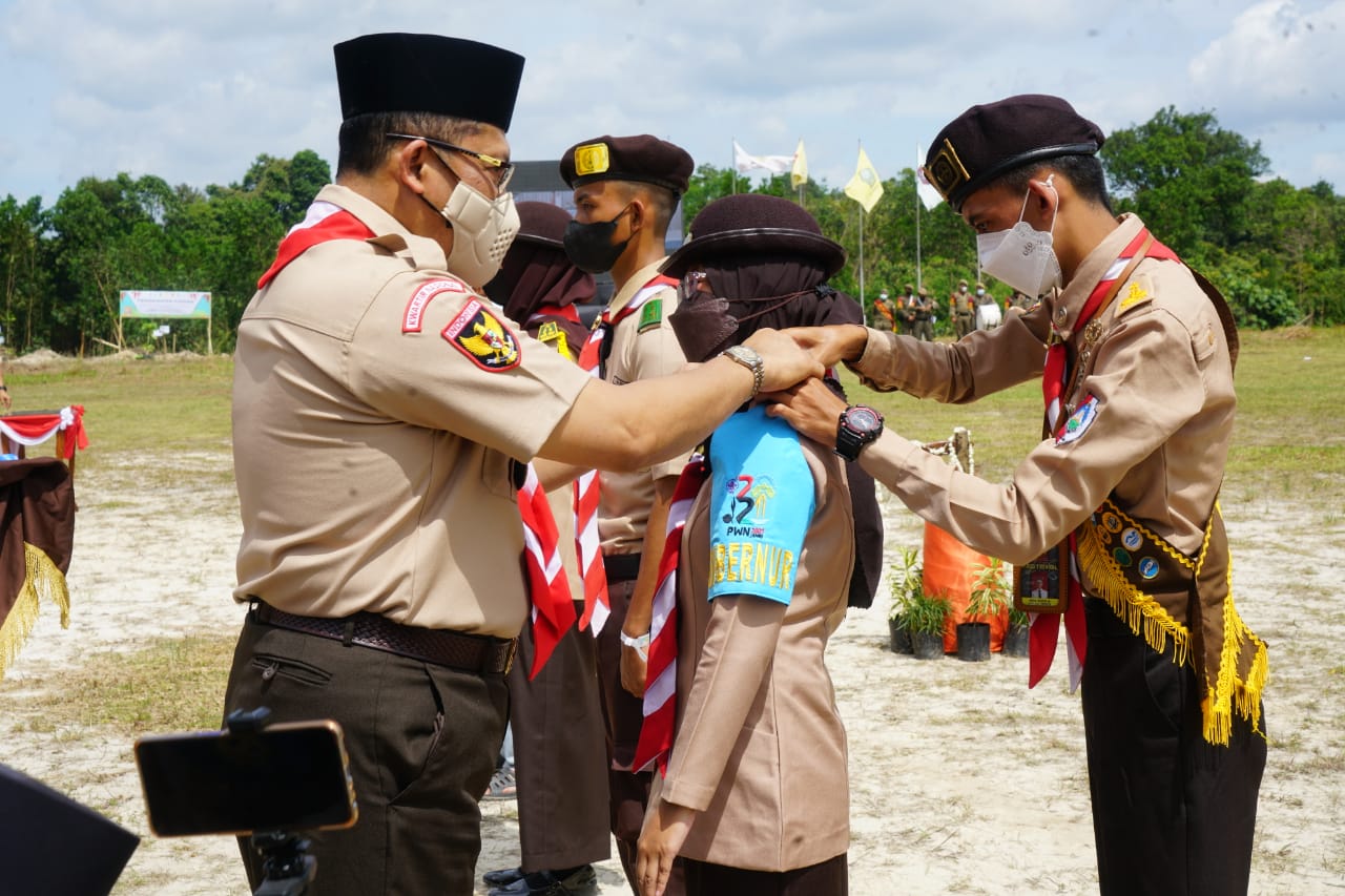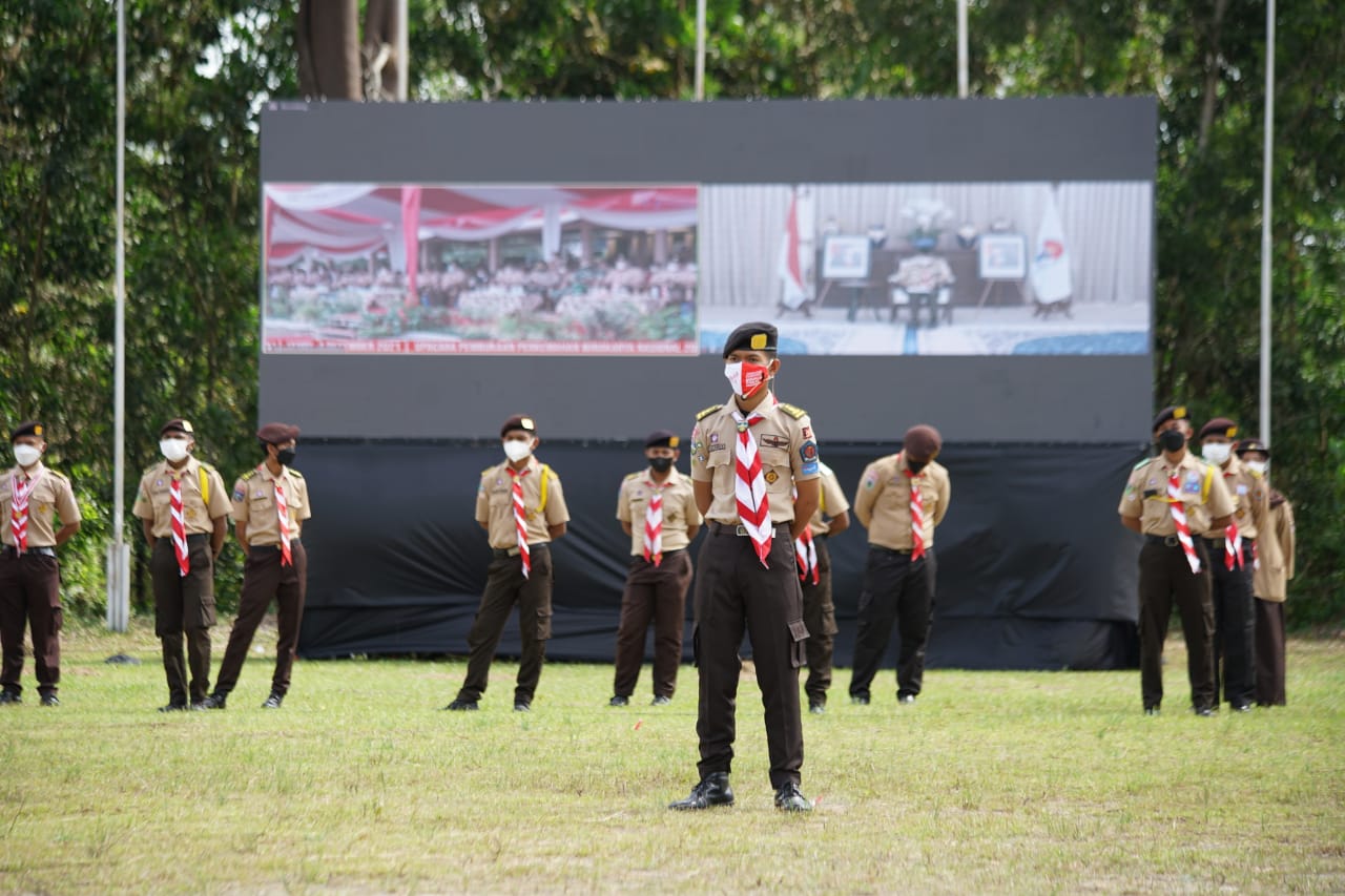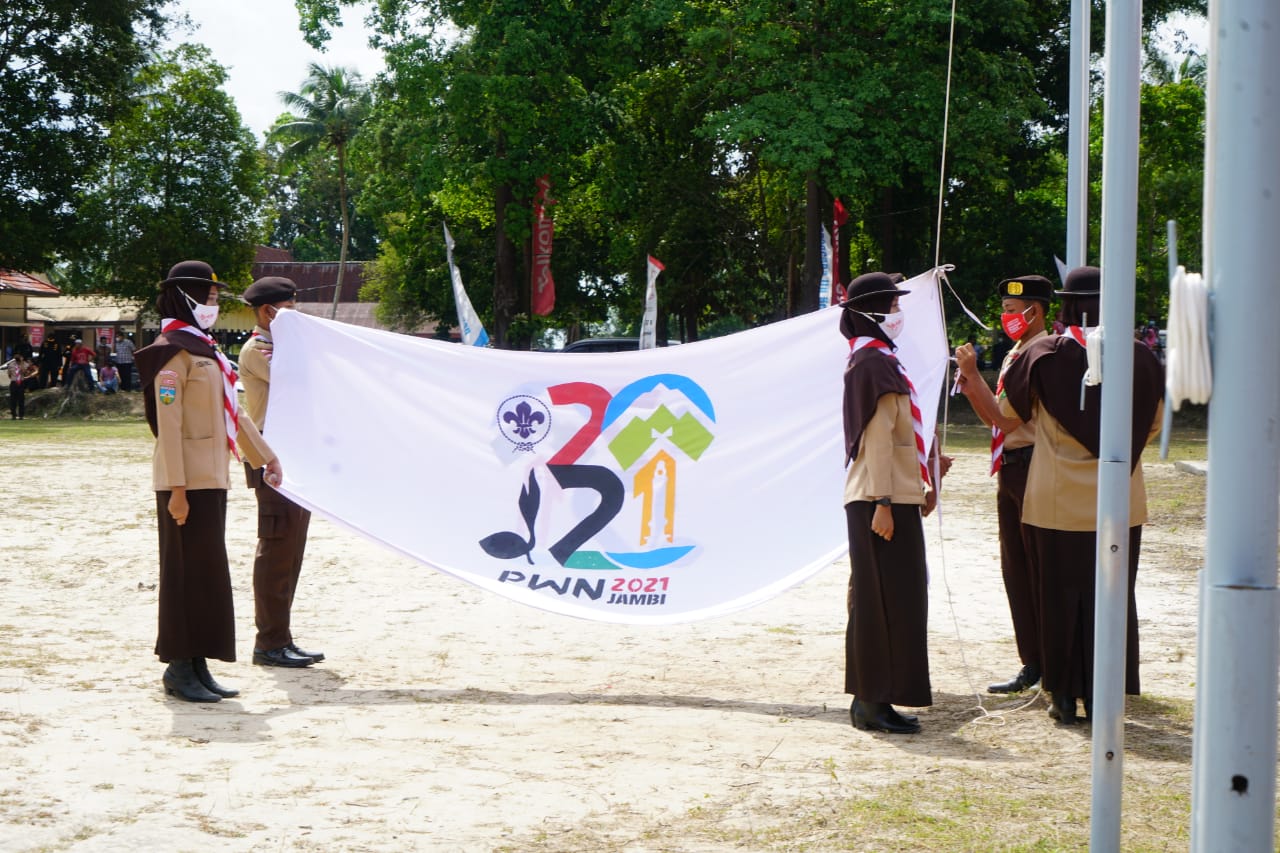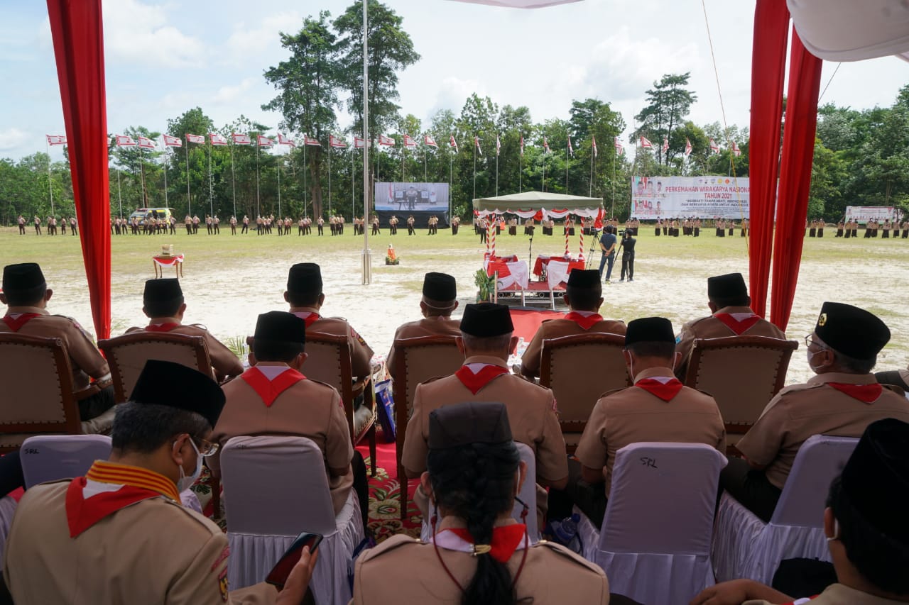 Upacara pembukaan Perkemahan Wirakarya Nasional Tahun 2021 di Buper Abdurrahman Sayoeti, Muaro Jambi, Sabtu, 3 Desember 2021. Acara pembukaan PW Nasional 2021 dibuka secara resmi oleh Menteri Pemuda dan Olahraga RI, Kak Zainudin Amali.