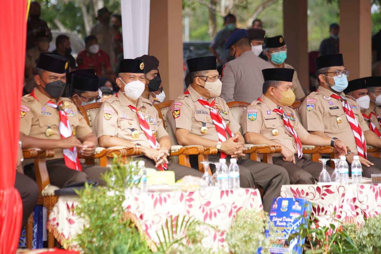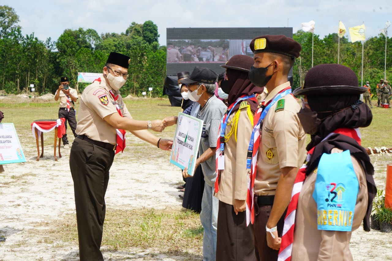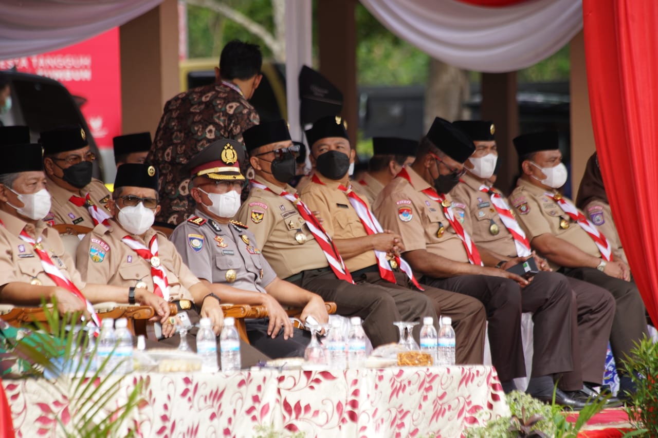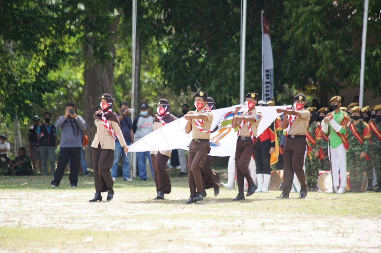 Upacara pembukaan Perkemahan Wirakarya Nasional Tahun 2021 di Buper Abdurrahman Sayoeti, Muaro Jambi, Sabtu, 3 Desember 2021. Acara pembukaan PW Nasional 2021 dibuka secara resmi oleh Menteri Pemuda dan Olahraga RI, Kak Zainudin Amali.