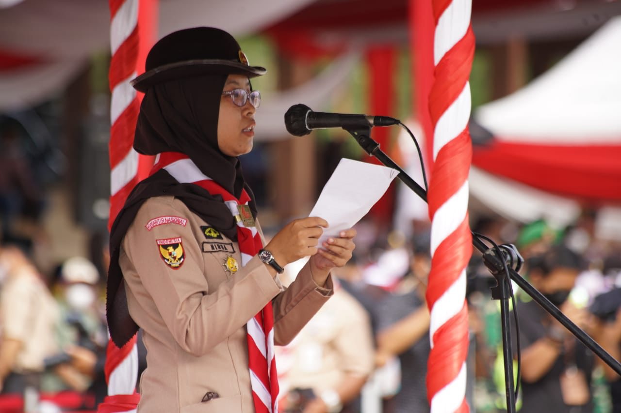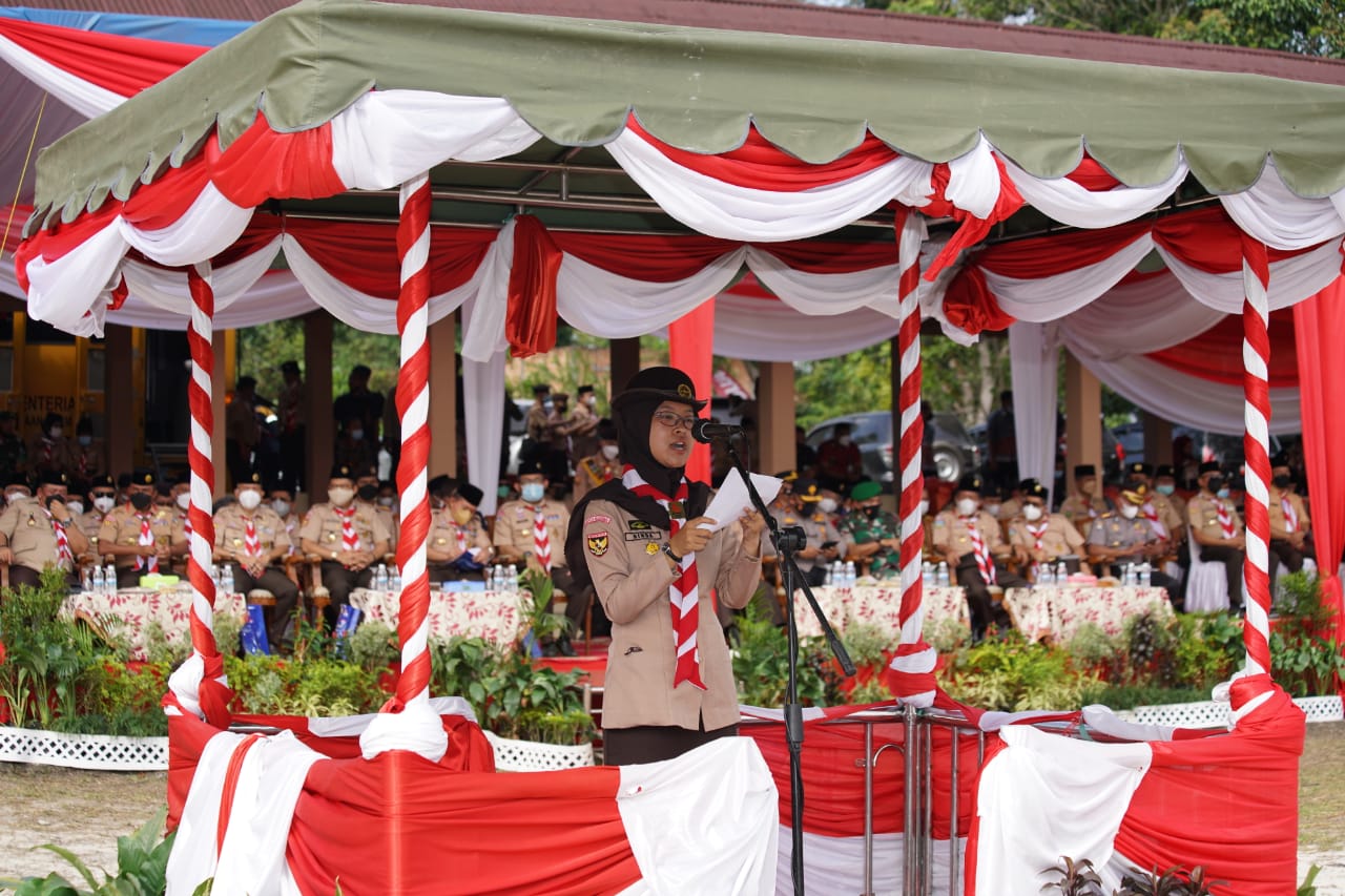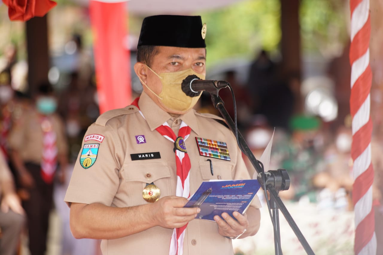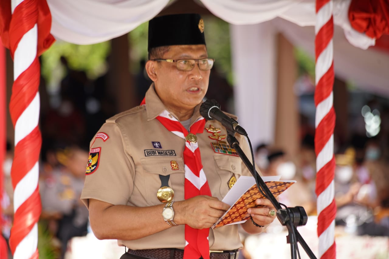Upacara pembukaan Perkemahan Wirakarya Nasional Tahun 2021 di Buper Abdurrahman Sayoeti, Muaro Jambi, Sabtu, 3 Desember 2021. Acara pembukaan PW Nasional 2021 dibuka secara resmi oleh Menteri Pemuda dan Olahraga RI, Kak Zainudin Amali.