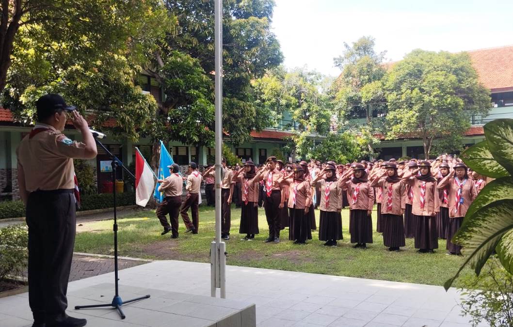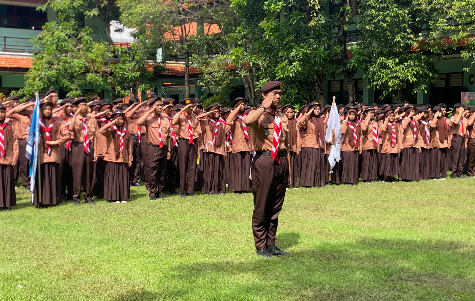 Kegiatan pemberian penghargaan yang dirangkai dengan penyematan badge ambalan dan sangga untuk seluruh anggota Gerakan Pramuka ini dilaksanakan di lapangan utama SMK Negeri 2 Buduran, Jum’at (12/01/2024). Proses upacara dipimpin langsung oleh Pembina Satuan gugus depan yang dikenal dengan Smenda Scout berjuluk Lion Campus, yakni Kak Uays Hasyim, SE., MM., CT.HLC., CPS.