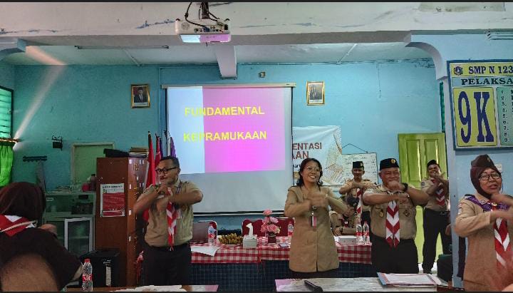 PRAMUKA.ID – Gugus depan pangkalan SMPN 123 Jakarta menyelenggarakan In House Training, kegiatan Kursus Orientasi Kepramukaan bagi pengurus Majelis Pembimbing Gugus depan (Mabigus) dan para Pembina Gugus depan pangkalan SMPN 123, Rabu (18/10/2023).