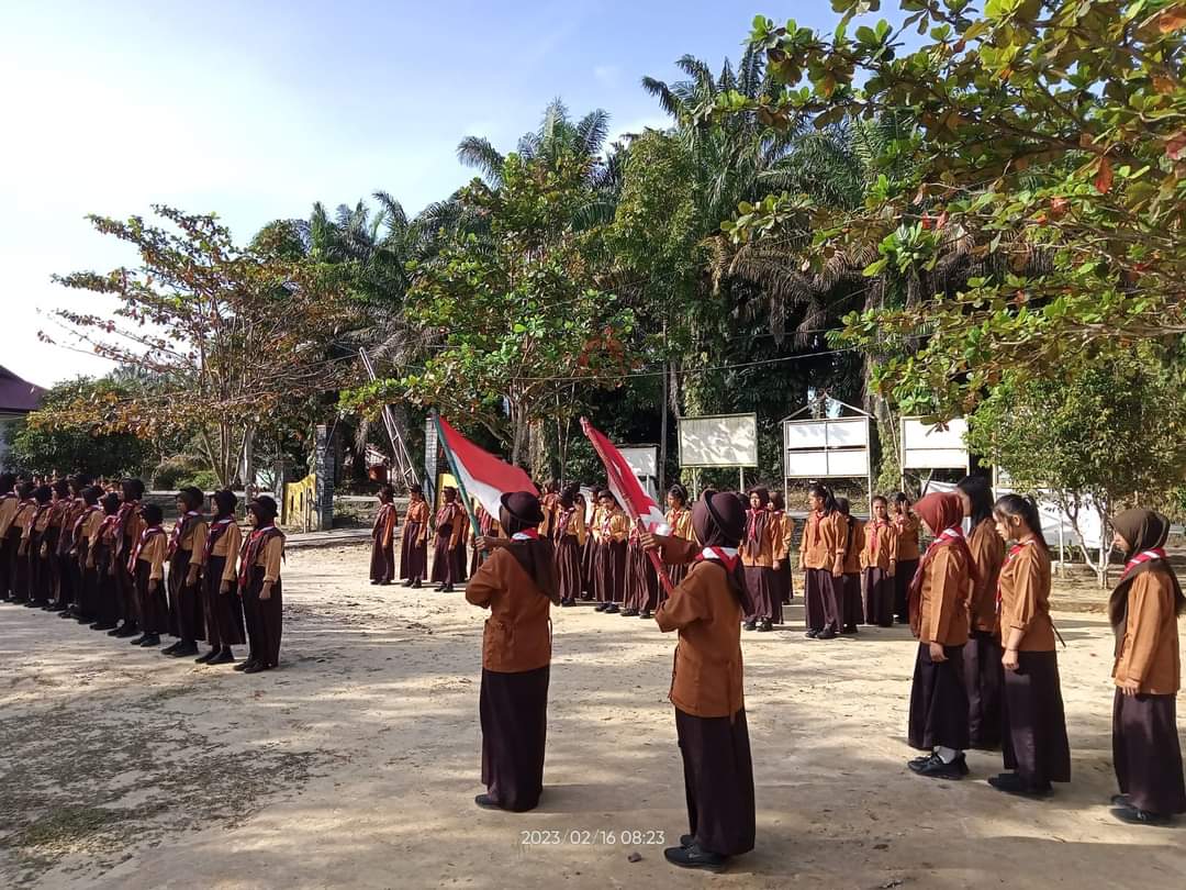 PRAMUKA.ID — Gugus Depan 03.037-03.038 pangkalan SMP Negeri 6 Minas mengadakan Upacara Kenaikan Tingkat Penggalang tingkat ramu dan rakit di Minas, Kamis (16/2/2023).