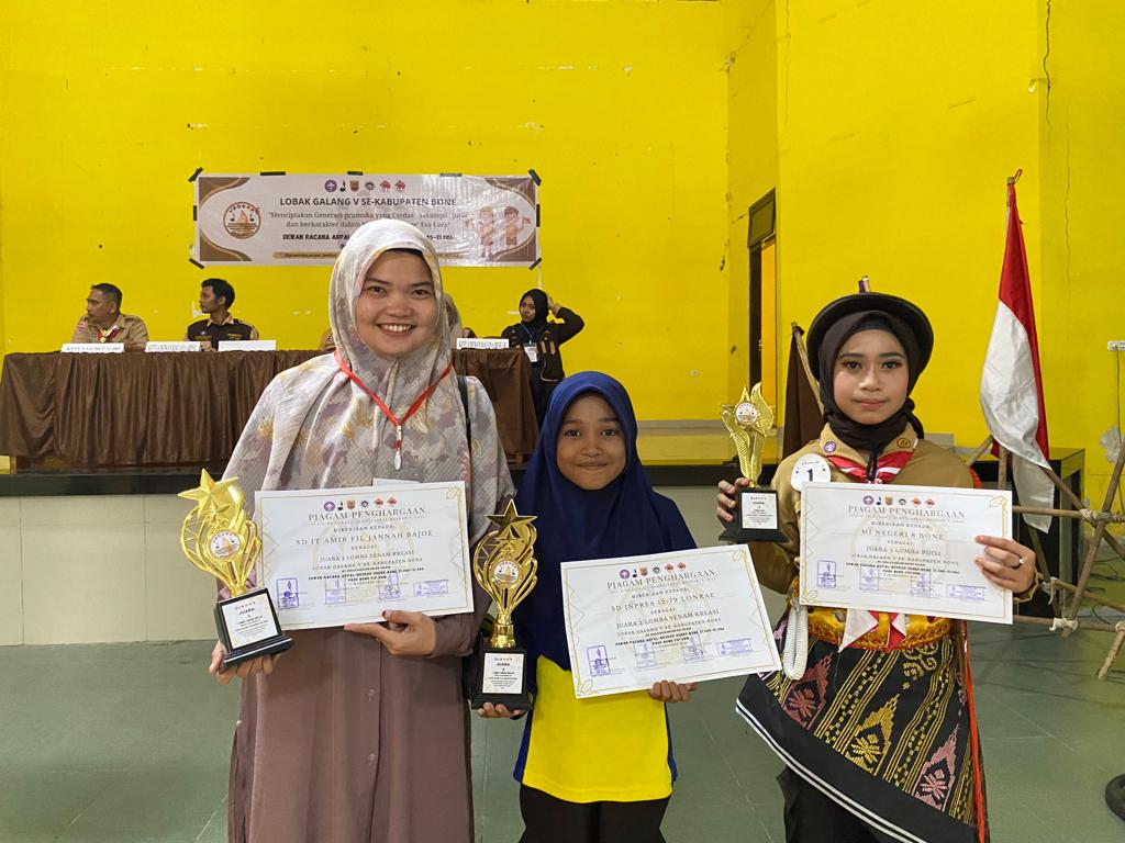 PRAMUKA.ID – Kabar gembira diterima Pramuka Penggalang dari Gudep 23 .033 – 23.034 pangkalan UPT SD Inpres 12/79 Lonrae, Kecamatan Tanete Riattang Timur, Kabupaten Bone Lomba Aksi dan Kreasi Pramuka Tingkat Penggalang (Lomba Galang) V yang baru saja diikuti berhasil memperoleh juara umum.