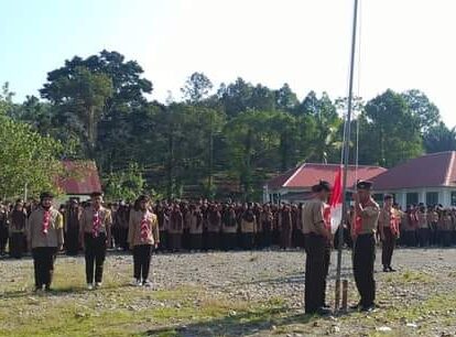 Kepala Sekolah selaku Ketua Majelis Pembimbing Gugus Depan Pangkalan UPTD SMA Negeri 1 Karossa, Kak Adianur, S.Pd bertindak selaku pembina upacara dan turut membacakan sambutan Menteri Pemuda dan Olahraga Republik Indonesia.