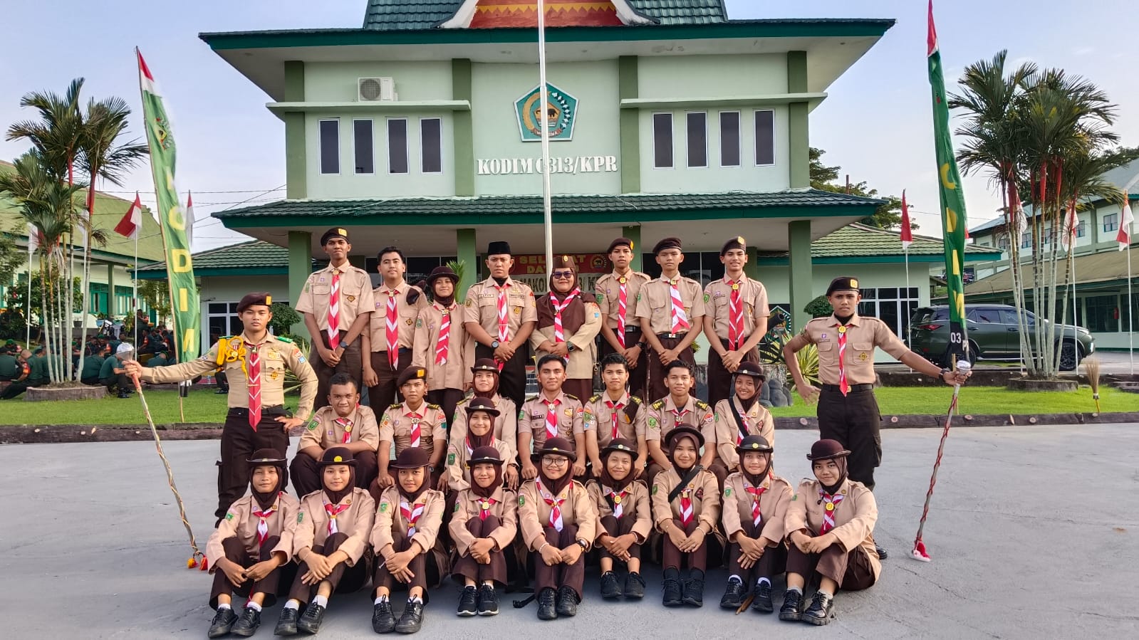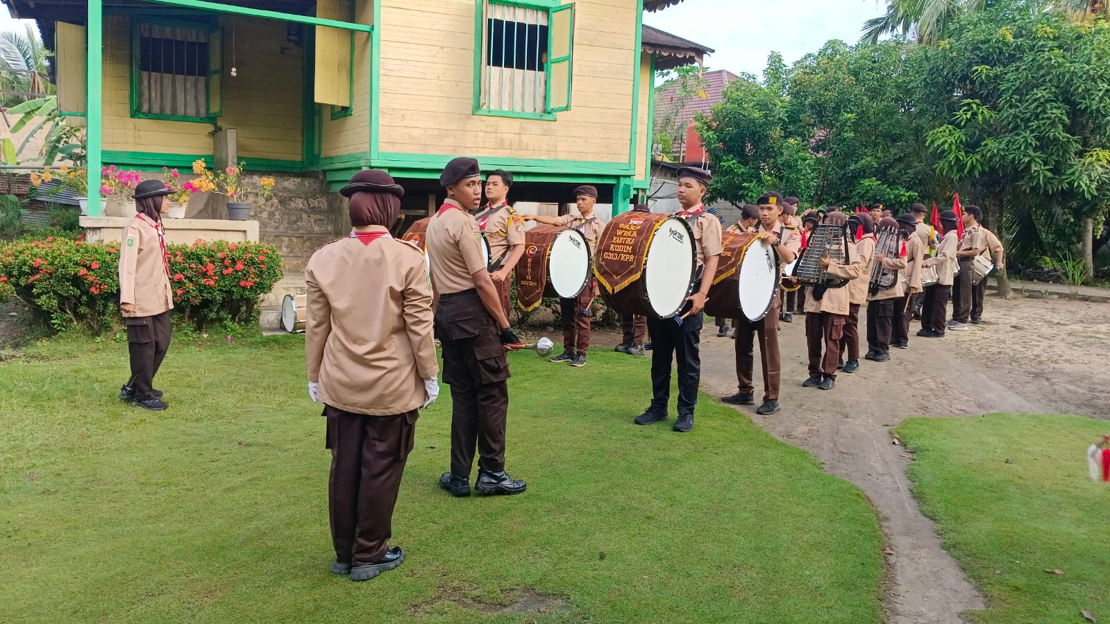 “Sebelumnya drumband Saka Wira Kartika Kodim 0313/KPR juga tampil pada acara serah terima jabatan Komandan Kodim, yang diselenggarakan di Makodim 0313/KPR pada Kamis. Sebelumnya kak Hadi bertugas sebagai Dandeninteldam II/Siliwangi dan kak Mulyadi akan mendapat amanah baru sebagai Kepala Staf Kodim 0301/PBR” ujar kak Putri.