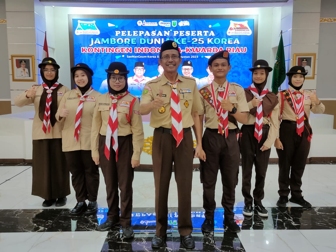 Konda Riau peserta Jambore Dunia ke-25 dilepas oleh Gubernur Riau yang diwakili Kadispora Riau Kak Boby Rachmat, Selasa (25/7/2023) malam di Balai Pauh Janggi Gedung Daerah Riau.