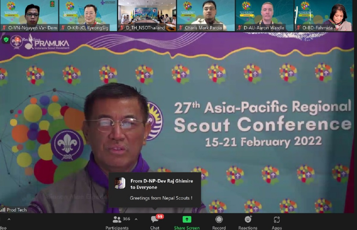 “Saya menyaksikan dedikasi yang begitu tinggi dan konkret dari seluruh organisasi kepramukaan di Asia-Pasifik untuk terus menjalankan dan mengembangkan berbagai kegiatan kepramukaan terlepas dari kondisi pandemi,” ujar Kak Rusdi ketika membuka Asia-Pacific Regional Scout Conference atau Konferensi Pramuka Kawasan Asia-Pasifik ke-27 secara online melalui aplikasi Zoom pada 15 Februari 2022.
