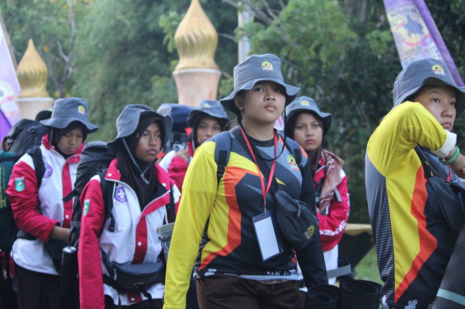 PRAMUKA.ID – Setelah mengikuti kegiatan rutin olahraga pagi berupa latihan seni bela diri pencak silat dan apel pagi, peserta Kemah Bela Negara (KBN) Tingkat Nasional Tahun 2023 mengikuti acara yang sudah terjadwalkan. Dengan menggunakan tranportasi bantuan Pemerintah Provinsi (Pemprov) Kalimantan Selatan (Kalsel), peserta puteri bergerak menuju sub camp mengikuti kegiatan Napak Tilas di Taman Hutan Rakyat (Tahura) Sultan Adam. Sebelum menuju tapak kemah, para peserta KBN 2023 khususnya peserta putri diturunkan Puncak Tengger, pegunungan Tahura kemudian turun melalui bukit Tirai Hujan, setibanya di Pintu Gerbang Tahura para peserta akan mendirikan tenda dan mengikuti kegiatan Sehari Bersama TNI dan Polri, ujar Wakil Ketua Kwarda Bidang Organisasi dan Hukum, Kak M. Rusli, S.Sos, MM