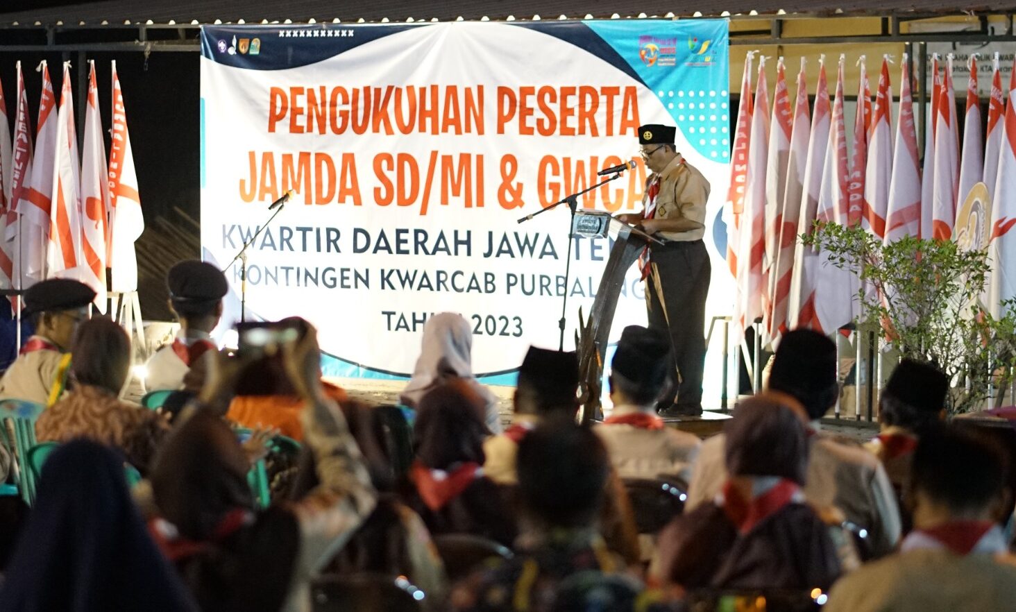 PRAMUKA.ID – Kontingen GWCAB dan Jamda SD/MI dikukuhkan secara langsung oleh ketua Kwatir Cabang Gerakan Pramuka Purbalingga, Jum’at (8/9/2023) di halaman Sanggar Bakti Pramuka Purbalingga. Nantinya dua kontingen ini akan bersiap mengikuti kegiatan di Pusat Kegiatan Kepramukaan (Puskepram) Candrabirawa, Semarang dengan waktu berbeda. Gladi Widya Cakra Adi Birawa (GWCAB) akan berangkat terlebih dahulu, yaitu pada tanggal 18 – 22 September 2023. Sedangkan Jambore Daerah (Jamda) SD/MI akan berlangsung pada tanggal 25-29 September 2023.