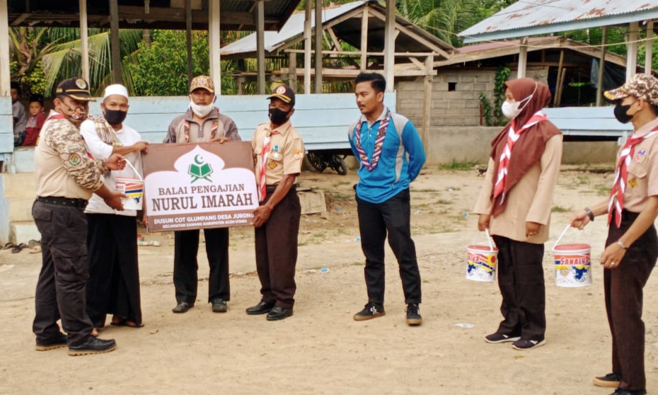 ACEH UTARA – Satuan Tugas (Satgas) Pramuka Peduli Kwartir Cabang (Kwarcab) Gerakan Pramuka Aceh Utara menggelar aksi Bakti Masyarakat. Kegiatan bakti secara perdana dilaksanakan pada awal bulan Juni 2021 itu melakukan kegiatan Pengecatan Balai Pengajian di Balai Pengajian Nurul Amarah, Dusun Cot Glumpang Gampong Jurong Kecamatan Sawang Kabupaten Aceh Utara dan dilanjutkan dibeberapa Balai Pengajian yang ada di wilayah Kabupaten Aceh Utara, Selasa (08/06/2021).