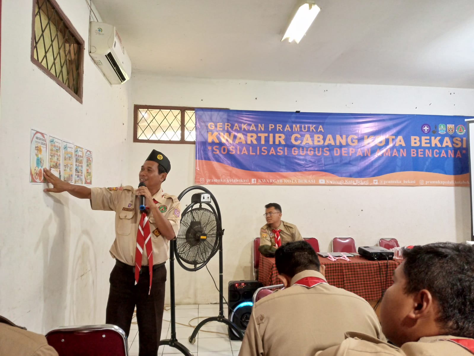 PRAMUKA.ID – Kwartir Cabang Gerakan Pramuka Kota Bekasi Bidang Pengabdian Masyarakat menyelenggarakan Sosialisasi Gugus depan Aman Bencana bagi Pembina Pramuka, Minggu (12/2/2023) di gedung sekretariat Kwarcab Kota Bekasi, Jl.Lapangan Bekasi Tengah, Margahayu Bekasi Timur dengan tema, “Siap Selamat dengan Gugus Depan Aman Bencana”.