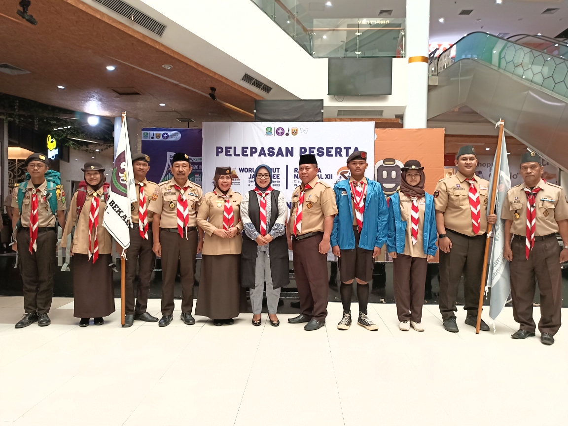 PRAMUKA.ID – Kwartir Cabang Gerakan Pramuka Kota Bekasi menyelenggarakan pelepasan peserta Jambore Pramuka Dunia (Jamdun) ke-25 di Saemangeum, Korea Selatan. Pada saat bersamaan dilepas pula peserta Raimuna Nasional (Rainas) XII Tahun 2023 yang akan digelar di Buperta Cibubur Jakarta, bertempat di Lagoon Avenue Mall Bekasi, Selasa (25/7/2023).