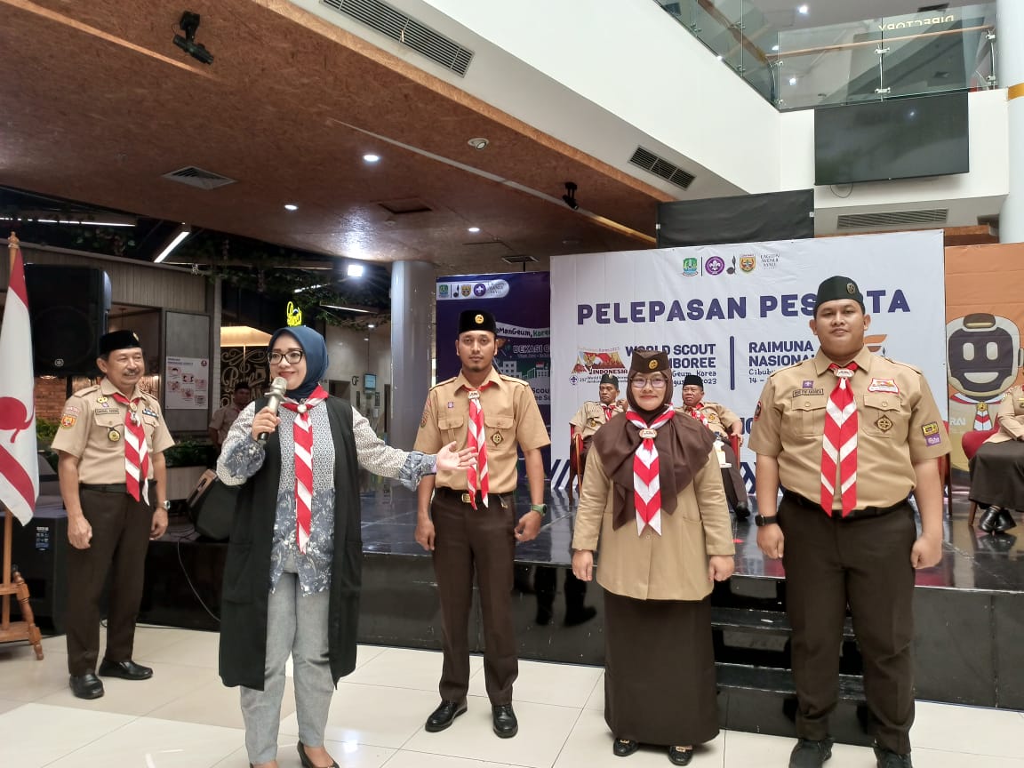 Sementara Ketua Kwarcab Kota Bekasi Kak Ade Puspitasari, S.Sos, MBA yang hadir pada acara pelepasan memberi semangat kepada para peserta dan mengingatkan untuk selalu menjaga kekompakan, kebersamaan dan menjaga nama baik Kota Bekasi dan negara Indonesia.