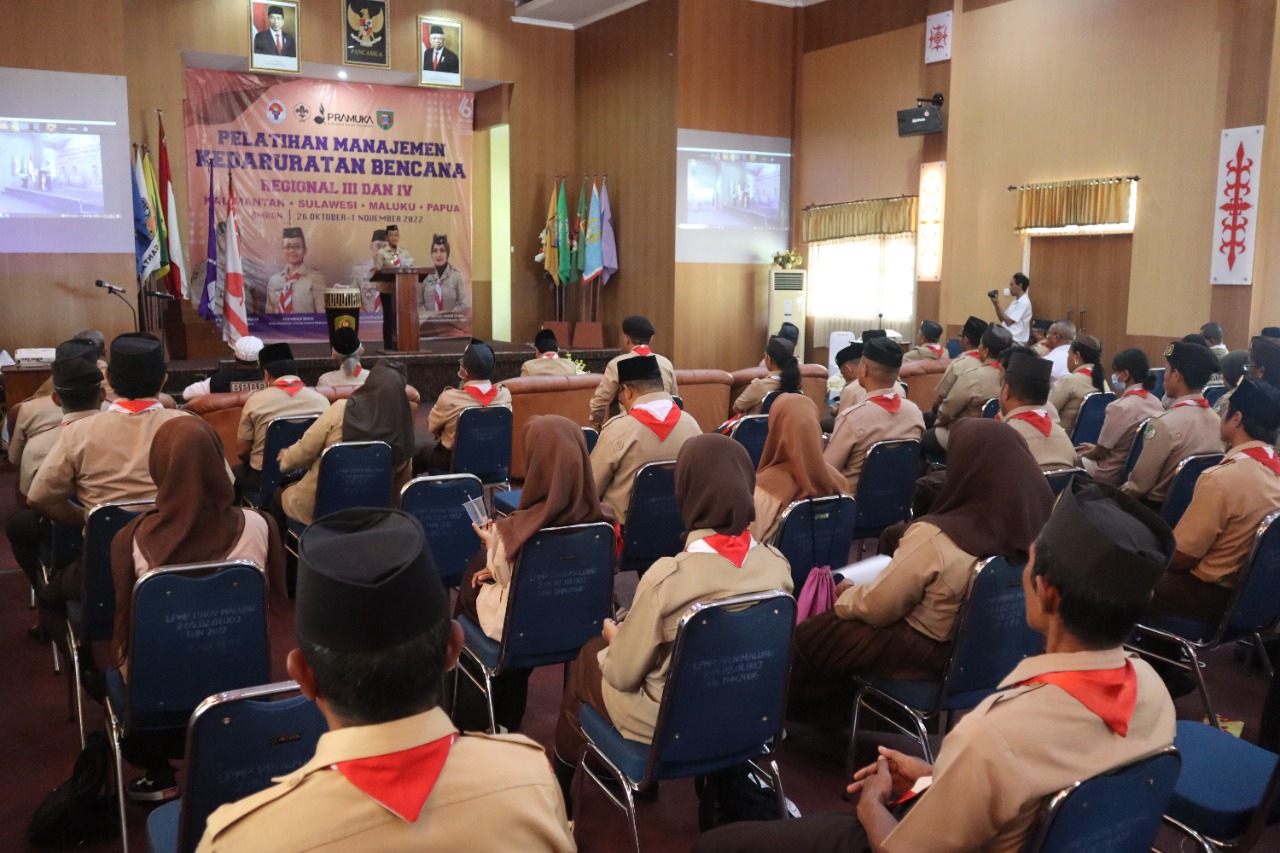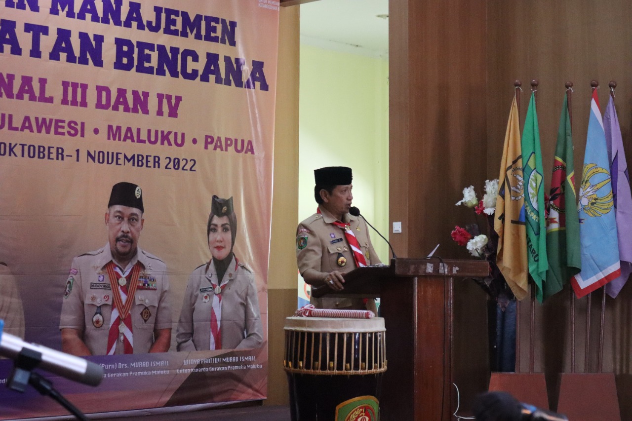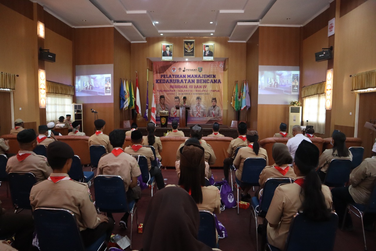 Acara Pelatihan Manajemen Kedaruratan Bencana (PMKB) Regional III dan IV dibuka secara resmi oleh Wakil Ketua Kwarnas/Ketua Komisi Pengabdian Masyarakat, Kak GKR Mangkubumi, Rabu, (26/10/2022) di Aula Balai Penjaminan Mutu Pendidikan Provinsi Maluku, Jl. Tihu Wailela Rumah 3, Tihu, Kec. Teluk Ambon, Kota Ambon, Provinsi Maluku.