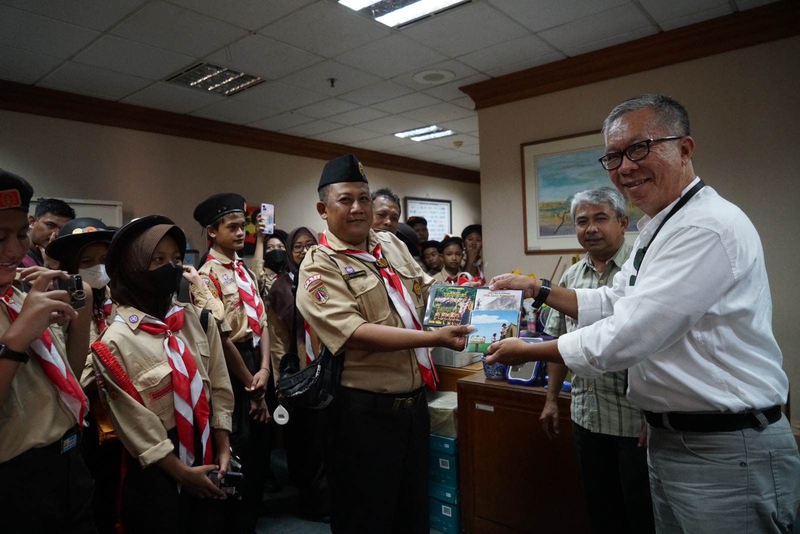 Andalan Nasional Komisi Pengabdian Masyarakat (Abdimas), Ir. Putu Ngurah Sonny Sanjaya didampingi Kak Taufiq Qurrahman, Kasubag Protokol dan Pengamanan Kwarnas menerima rombongan yang dipimpin langsung oleh Kepala Sekolah/Kamabugus pangkalan SMPN 3 Juwana, Pati, Jawa Tengah, Kak Sutrisno, S. Pd., M. Pd.