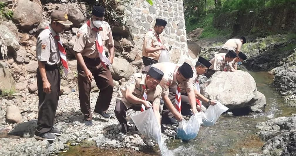 PRAMUKA.ID – Kwartir Ranting (Kwarran) Gerakan Pramuka Kebasen menggelar aksi lingkungan berupa tebar benih ikan di sungai Komplek Wisata Curug Song Minggu (4/9/2022).