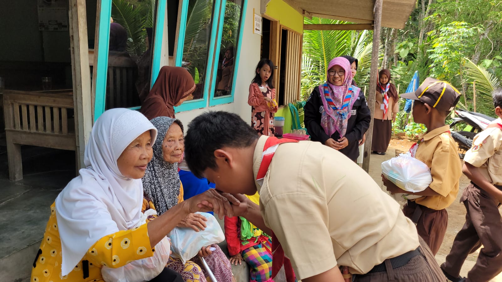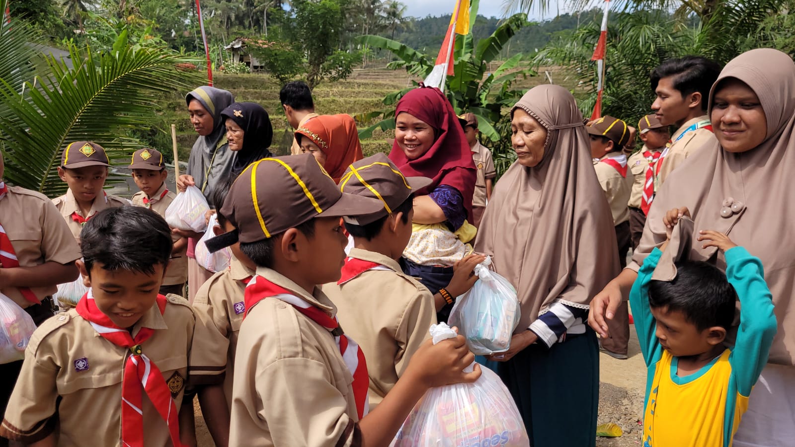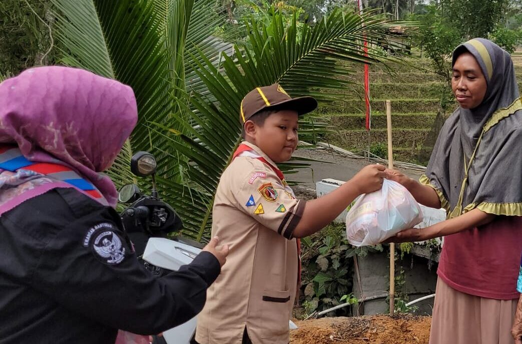 Sembako yang dibagikan merupakan infaq dan iuran para anggota Gerakan Pramuka melalui kegiatan “Gerak Pandu Menabung” yang dikumpulkan setiap Rabu untuk kegiatan perkemahan dan bakti Sosial.