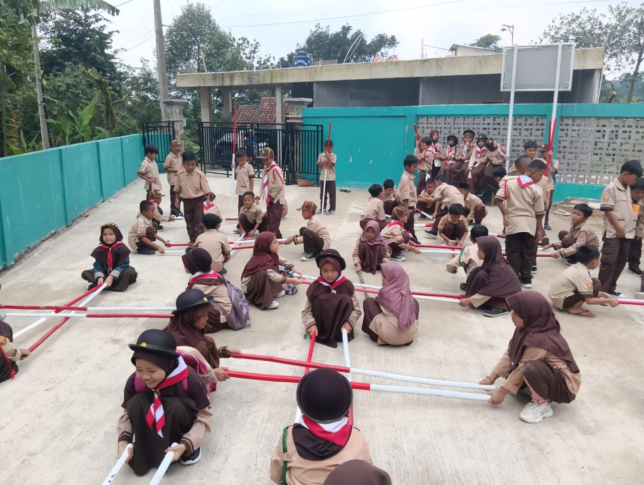 Latihan digelar di halaman sekolah dengan dibimbing langsung para pembina. Turut hadir pula Kak Idah Faridah, S.Pd., M.M. selaku Ketua Majelis Pembina Gugusdepan (Ka Mabigus) SDN Tajurhalang 1.