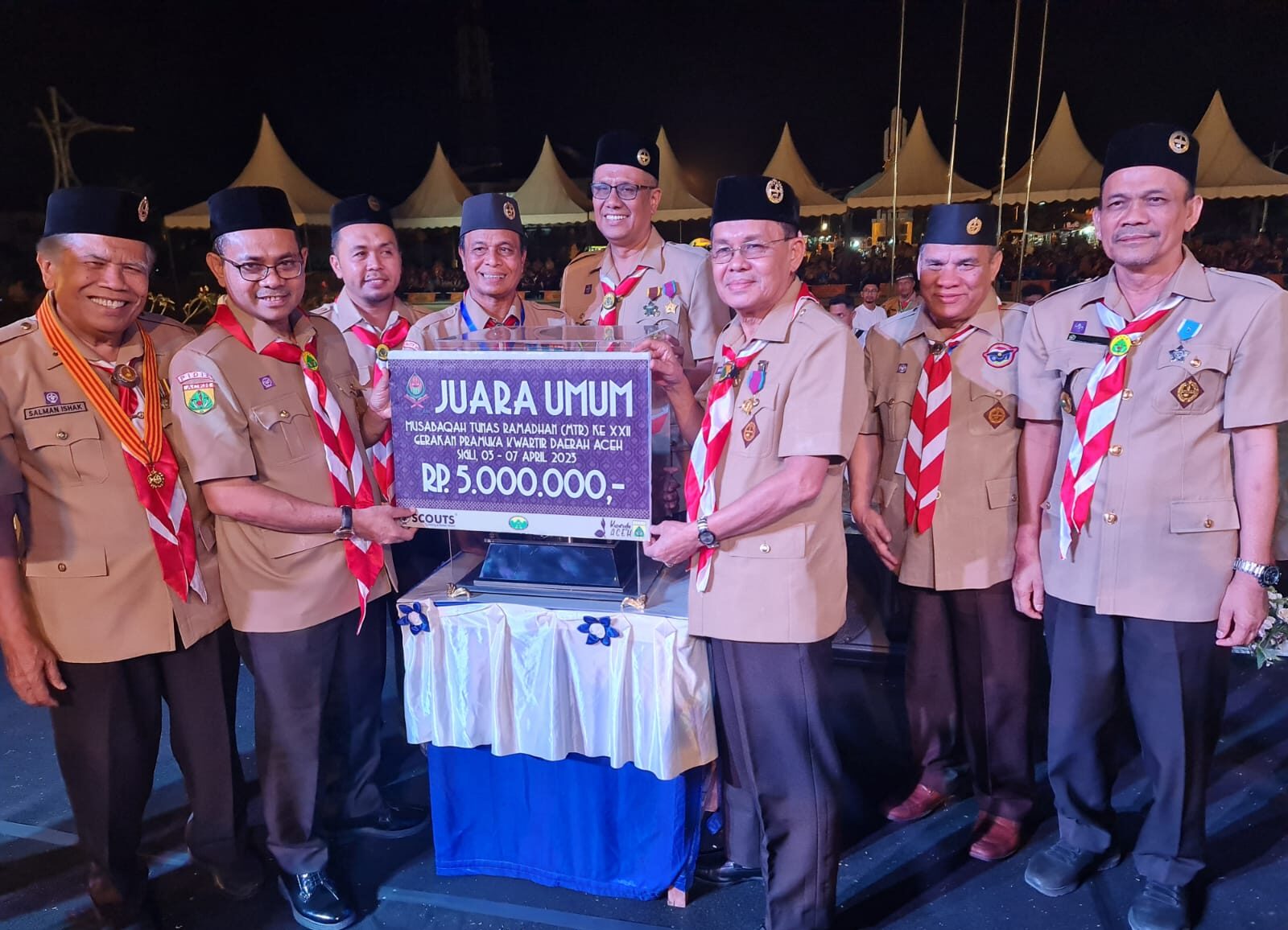 PRAMUKA-ID – Sebanyak enam anggota Gerakan Pramuka Penegak Putra – Putri di Aceh mendapat bonus umrah setelah berhasil meraih juara l pada ajang Musabaqah Tunas Ramadhan (MTR) Kwarda Gerakan Pramuka Aceh ke XXII tahun 2023. Pengumuman hasil kegiatan yang berlangsung sejak 3 April 2023 itu dibacakan oleh Koordinator dewan hakim, Kak H. Baharuddin AM. S.Ag usai upacara penutupan even tahunan tingkat daerah khusus syariat islam tersebut sekira jam 00.30 wib jumat (07/04/2023). Sebelumnya usai shalat tarawih, kegiatan ditutup secara resmi oleh Sekretaris Daerah Kabupaten Pidie, Kak H. Idhami S.Sos M.Si, selaku unsur majelis Pembimbing Cabang (Mabicab) Gerakan Pramuka Pidie.