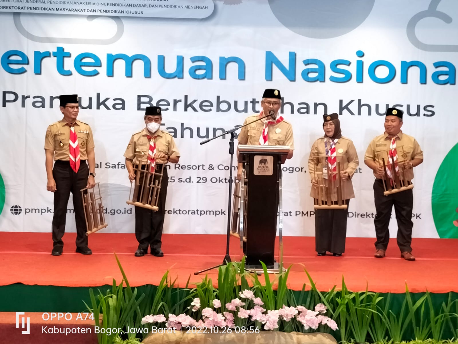 “Mari kita wujudkan nilai-nilai Pancasila dalam kehidupan kita sehari-hari”, ucap Ketua Kwarnas dalam sambutan yang dibacakan oleh Wakil Ketua Kwarnas/Ketua Komisi Pembinaan Anggota Dewasa (Binawasa), Dr. Joko Murshito pada acara pembukaan Pertemuan Nasional Pramuka Berkebutuhan Khusus Tahun 2022 (PNPBK 2022) di Royal Safari Garden, Jalan Raya Puncak, Gadok, Cisarua, Bogor, Jawa Barat, Rabu (26/10/2022)
