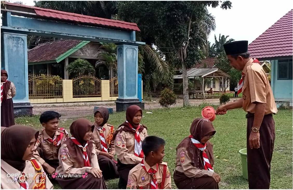 PRAMUKA.ID — Gugusdepan 16-041 dan 16-042 Pangkalan SMP Negeri 4 Teluk Gelam mengadakan kegiatan Pelantikan Kenaikan Tingkat dari Penggalang Ramu ke Rakit dan Rakit ke Terap, Jumat (10/02/2023).