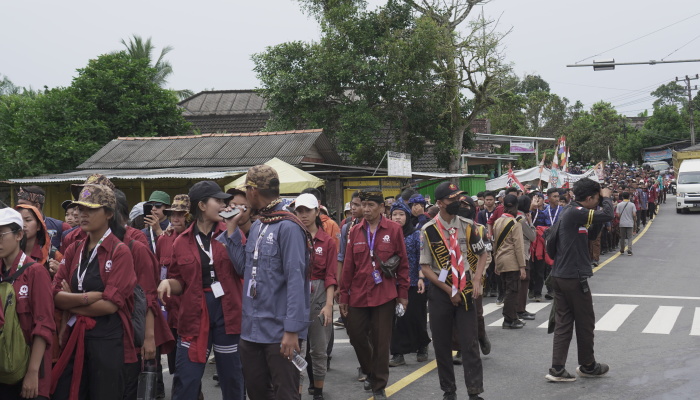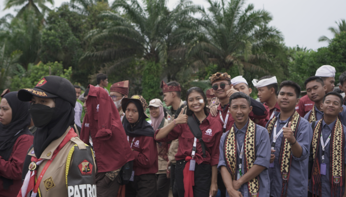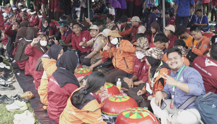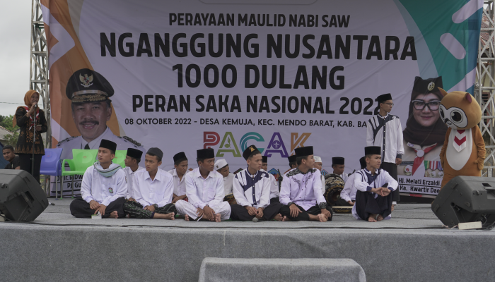 PRAMUKA.ID – Para peserta Perkemahan Antar Satuan Karya Pramuka (Peran Saka) Nasional 2022 memperingati Maulid Nabi SAW dengan melaksanakan kegiatan Kirab Budaya dan Nganggung Nusantara 1000 Dulang, yang merupakan salah satu rangkaian kegiatan Peran Saka Nasional 2022, di lapangan bola Desa Kemuja, Kecamatan Mendo Barat, Kabupaten Bangka, Sabtu (8/10/22).