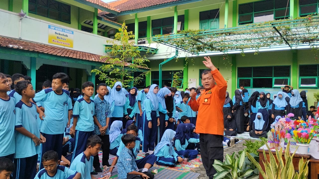 “SMP Negeri 2 Wangon bangunannya berbentuk tingkat 2 lantai, sehingga setiap siswa harus tahu dimana jalur evakuasinya, dimana titik kumpulnya, bagaimana mereka melakukan pertolongan terhadap temannya jika ada yang mengalami celaka,” katanya