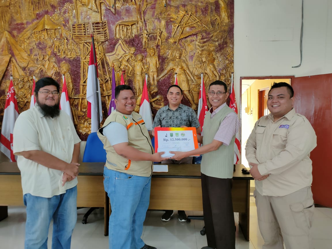 PRAMUKA.ID — Kwartir Cabang (Kwarcab) Gerakan Pramuka Rokan Hulu melalui Satuan Tugas (Satgas) Pramuka Peduli menyerahkan donasi hasil aksi Bumbung Kemanusiaan Tanah Longsor Serasan, Natuna Provinsi Kepulauan Riau Kepada Kwartir Daerah (Kwarda) Gerakan Pramuka Riau pada Selasa (18/4/2023) di aula Kwarda Riau.