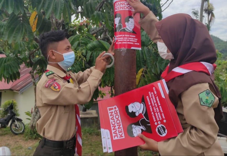 - Menyebarluaskan pamflet pesan “Jangan Kendor Pakai Masker” di wilayah Kelurahan Durian II, Sawahlunto; dan
