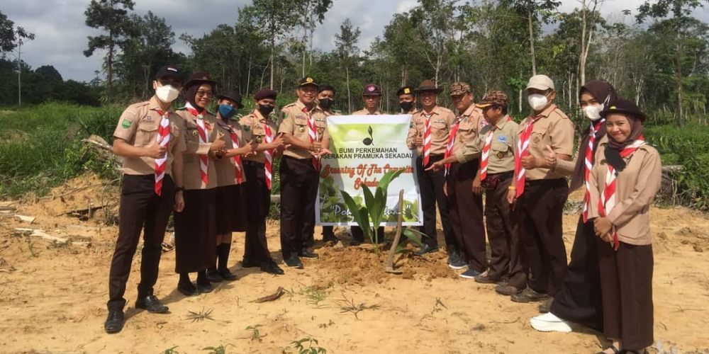 PRAMUKA.ID — Puluhan anggota Pramuka di Kwartir Cabang (Kwarcab) Gerakan Pramuka Sekadau selenggarakan aksi penghijauan di Bumi Perkamahan Sekadau, Kalimantan Barat, Minggu (30/01/2022).