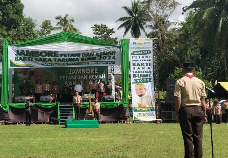PRAMUKA.ID – Kegiatan Kemah Bakti Saka Tarunabumi 2024 resmi dibuka oleh Kepala Dinas Tanaman Pangan, Hortikultura dan Perkebunan (TPHP) Kabupaten Bone pada Sabtu (27/4/2024). Ajang yang dirangkaikan dengan Jambore Petani tersebut berlangsung selama dua hari, tanggal 27-28 April 2024 bertempat di Bakke, Desa Kajaolaliddong, Kabupaten Bone, Sulsel.