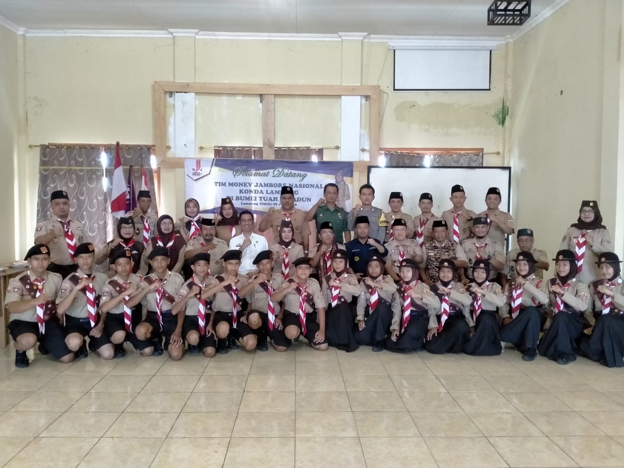 Sedangkan Kak Gandung selaku Pinkonda Lampung didampingi oleh Kak H.M.Muslih,S.H.I., M.H selaku Ketua Panitia Jamnas Konda Lampung, Kak Pariyanto selaku Ketua Bidang Sarana dan Prasarana Konda Lampung, Kak.Supriyono ,M.Pd selaku anggota Bidang Sarana dan Prasarana Konda Lampung, Kak Junaidi,A.,S.Pd selaku Staff Kontingen Daerah, Kak Sutiyono SR selaku anggota Panitia Daerah serta Dewan Kerja Daerah (DKD) Lampung.
