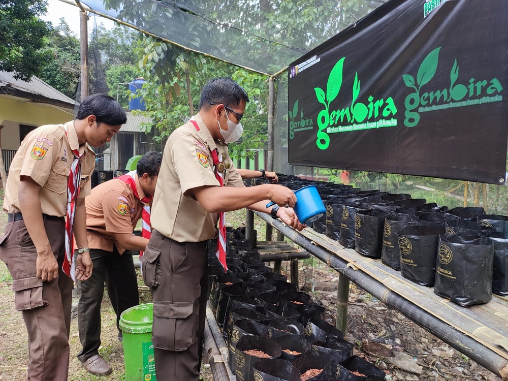 “Kegiatan Gembira di dimulai dengan rapat dengan kwarran lalu persiapan media tanam di gugusdepan dan penyemaian serentak diseluruh gugusdepan,” ungkap Kak Doris.